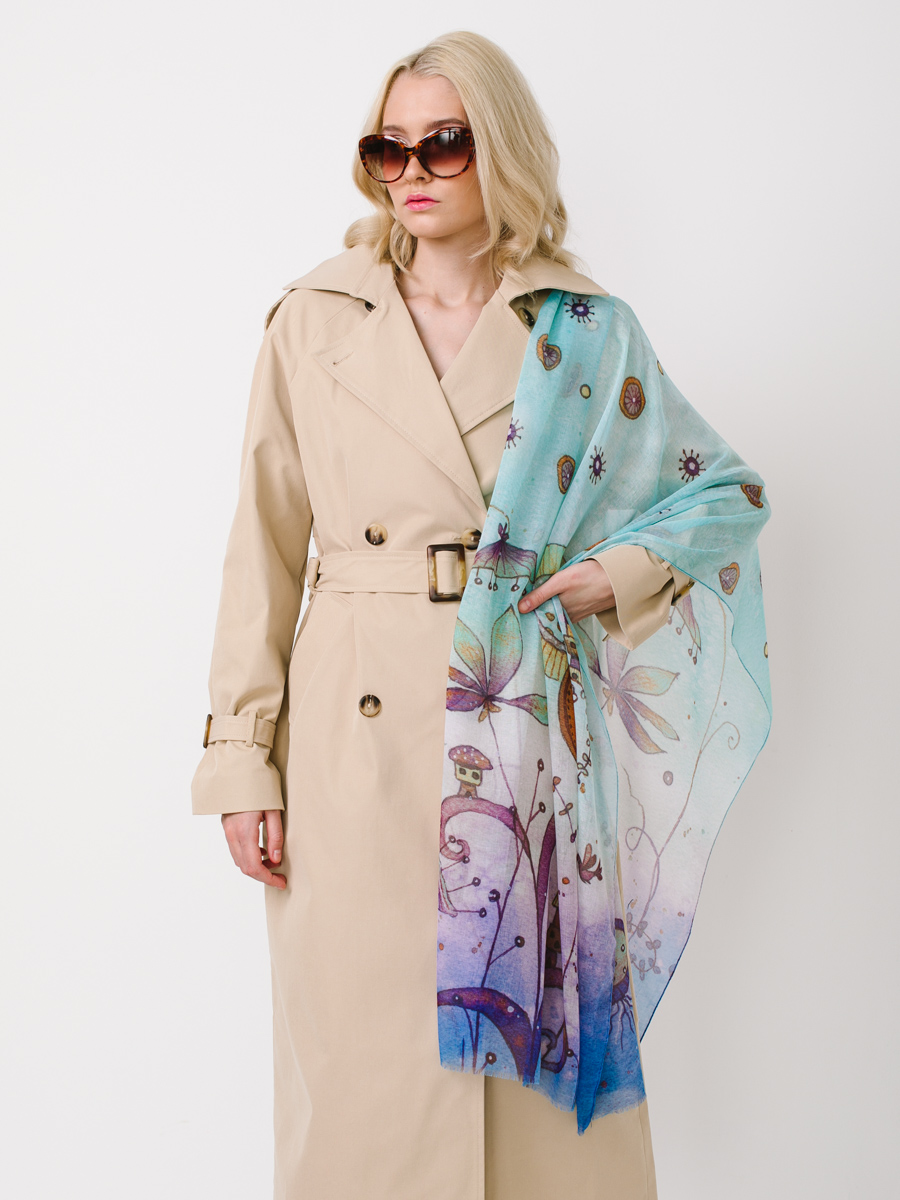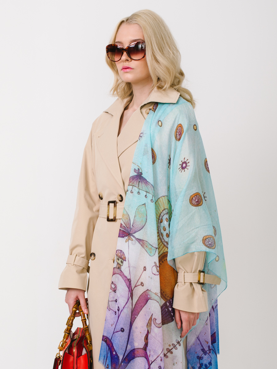 Большой, мягкий, тонкий и очень нежный палантин с рисунком в стиле арт-деко. Только ручная стирка. 45% полиэстер, 35% вискоза, 20% шелк