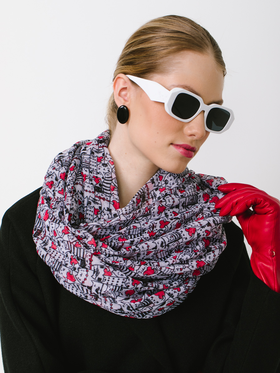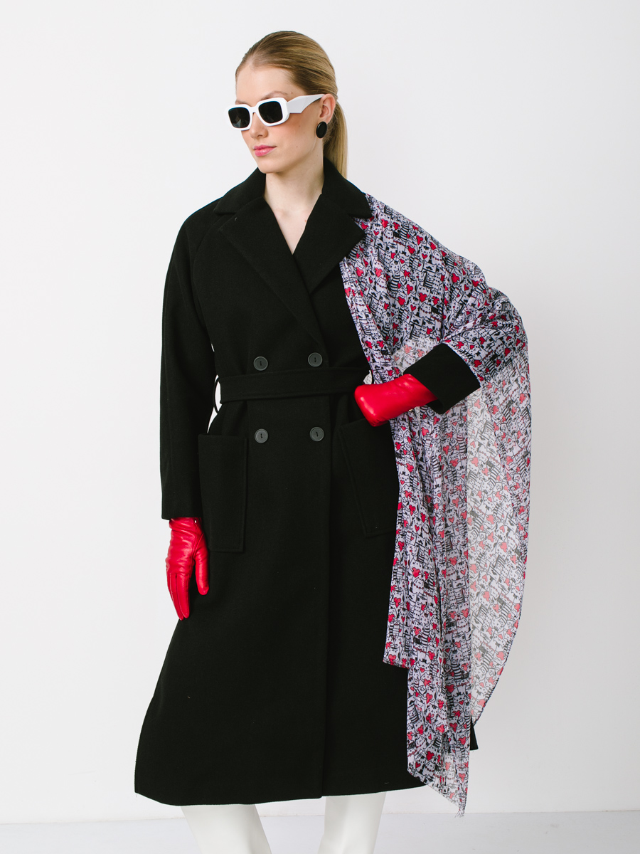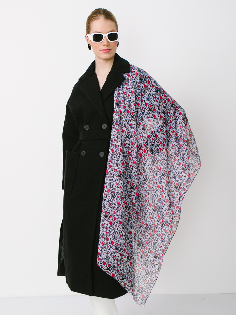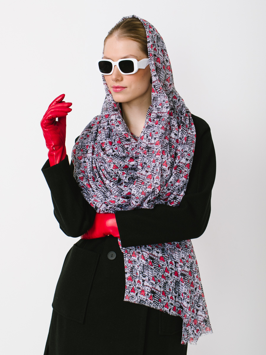 Большой, мягкий, тонкий и очень нежный палантин с рисунком в стиле арт-деко. Только ручная стирка. 45% полиэстер, 35% вискоза, 20% шелк