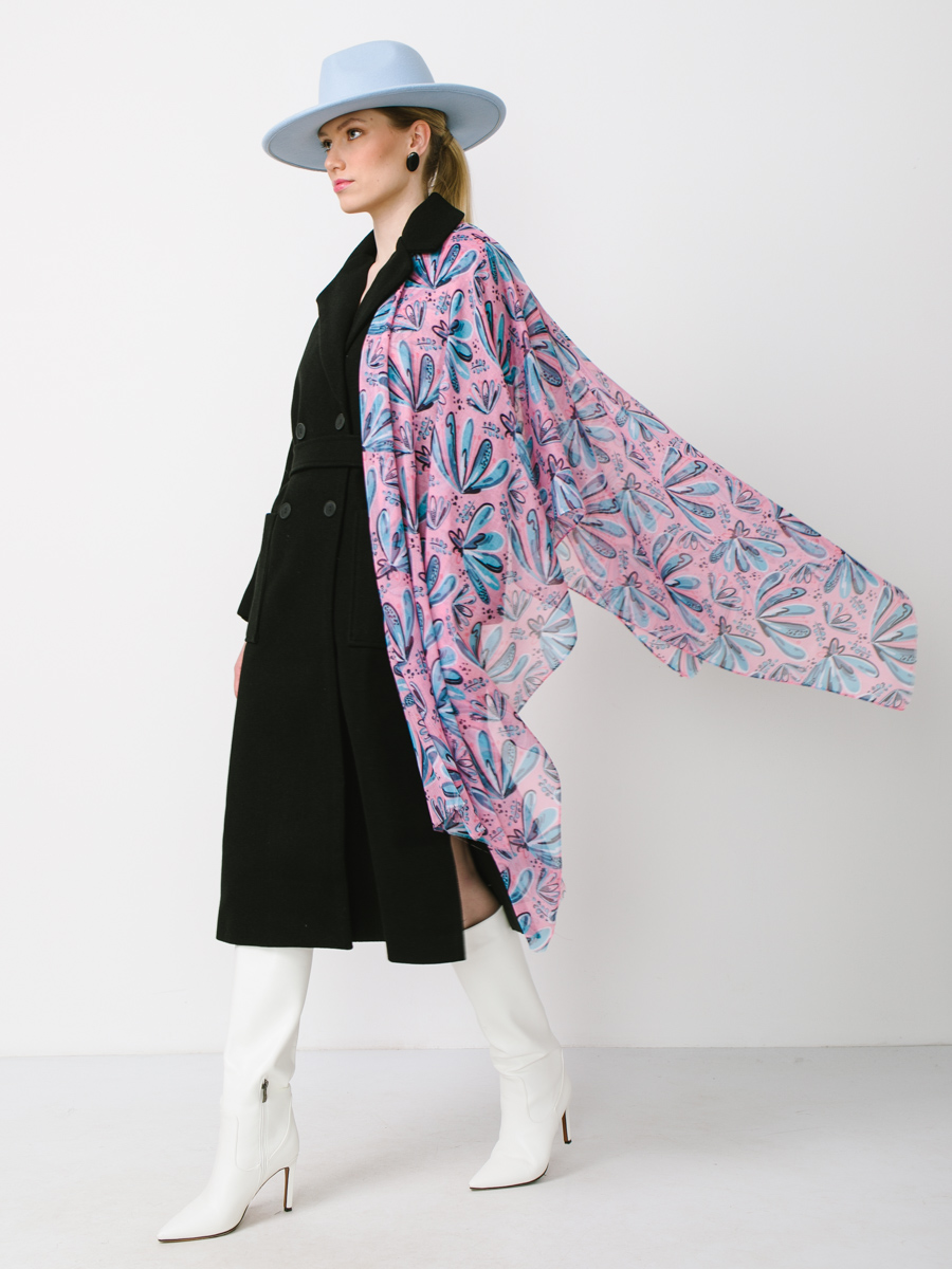 Большой, мягкий, тонкий и очень нежный палантин с рисунком в стиле арт-деко. Только ручная стирка. 45% полиэстер, 35% вискоза, 20% шелк