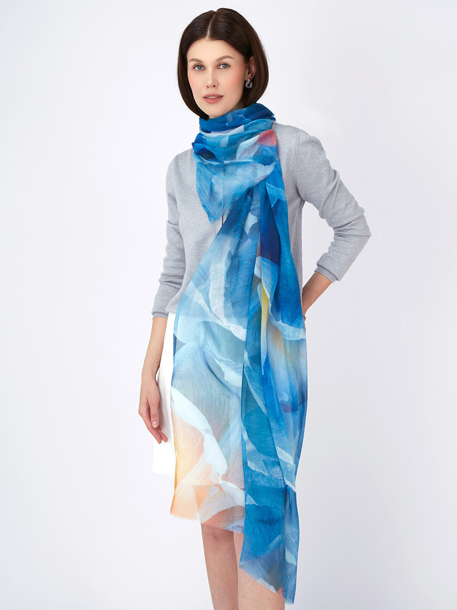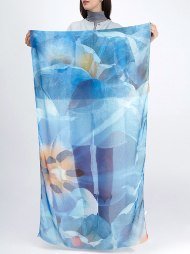 Большой, мягкий, тонкий и очень нежный палантин с рисунком в стиле арт-деко. Только ручная стирка. 45% полиэстер, 35% вискоза, 20% шелк