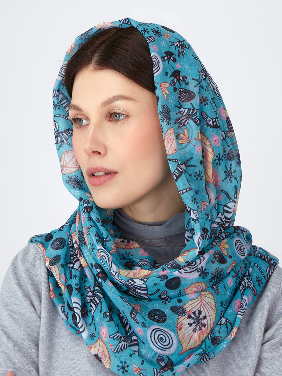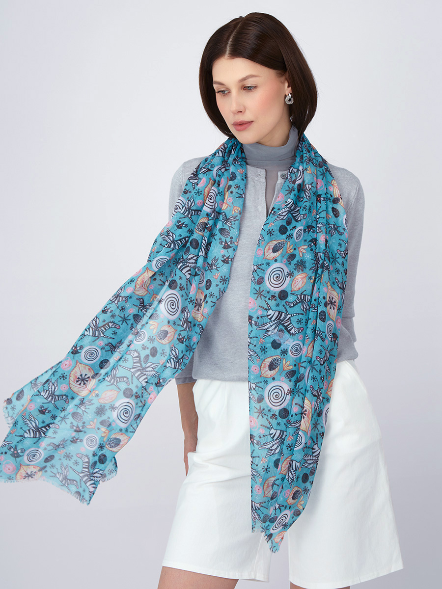 Большой, мягкий, тонкий и очень нежный палантин с рисунком в стиле арт-деко. Только ручная стирка. 45% полиэстер, 35% вискоза, 20% шелк