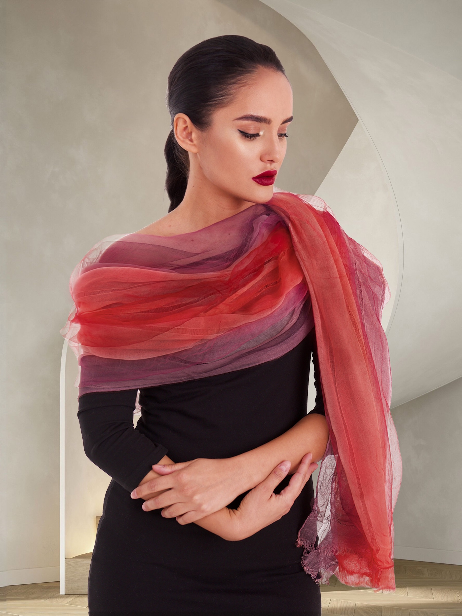Палантин “Переливы воздушного шелка (кораллово-бордовый)“ SZD01-3