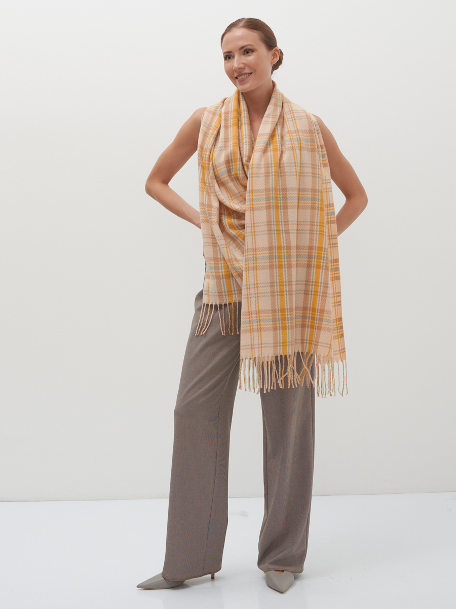 Большой, мягкий, теплый двусторонний палантин с рисунком в стиле арт-деко. Края изделия украшены кистями. Только ручная стирка. Шерсть 25%/ вискоза 30%/ модал 45%
