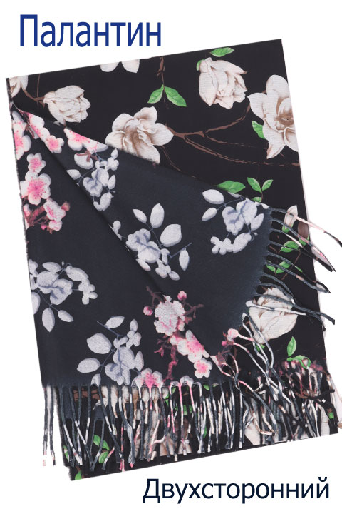 Мягкий, плотный, двухсторонний палантин. Края палантина заканчиваются кромкой, концы - бахрома.