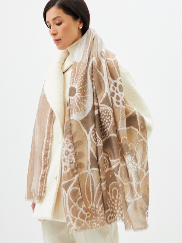 Представляем Вашему вниманию эксклюзивный женский палантин, который станет жемчужиной ассортимента любого бутика или шоурума. Разработанный и произведенный нашими специалистами, он воплощает в себе совершенство дизайна и комфорта.Этот большой, двусторонний палантин привлекает внимание своим уникальным рисунком в стиле арт-деко, который добавляет образу изысканности и неповторимого шарма. Мы тщательно подбираем ткани, и этот палантин выполнен из материала с невероятно мягкой и нежной текстурой, обеспечивающей максимальный комфорт при ношении. Аккуратная обработка краев свидетельствует о высоком качестве пошива и внимании к деталям – отличительных чертах нашей продукции.Двусторонний дизайн предлагает вариативность в создании образов, позволяя Вашим покупательницам экспериментировать со стилем. Палантин легко вписывается как в повседневные, так и в более формальные ансамбли, делая его универсальным и востребованным аксессуаром.Преимущества для оптовых закупщиков:Высокий спрос: Актуальный дизайн и премиальное качество гарантируют интерес со стороны конечных потребителей.Превосходные лекала и материалы: Каждый палантин – это образец безупречного исполнения, разработанный нашими конструкторами.Легкость в уходе: Деликатная машинная стирка – удобство, которое ценят современные женщины.Высокая маржинальность: Привлекательная оптовая цена и розничная ценность продукта обеспечивают отличную прибыль.Включите этот палантин в свой ассортимент, чтобы предложить Вашим клиентам не просто аксессуар, а произведение искусства от TANTINO, созданное с любовью и вниманием к каждой детали. Полиэстер 60%, Вискоза 40%