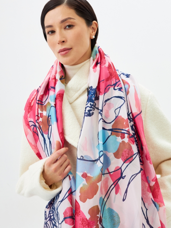 Представляем вашему вниманию эксклюзивный двусторонний палантин, который станет ярким акцентом в ассортименте любого бутика или шоурума. Это не просто аксессуар, а произведение искусства, способное мгновенно преобразить образ и привлечь внимание самых взыскательных покупательниц.Созданный нашими дизайнерами, палантин D2-1351-1 отличается уникальным принтом в стиле "арт-деко". Смелые линии, гармоничные цветовые пятна и глубокие оттенки розового, голубого и кораллового создают динамичный, но при этом элегантный узор. Атласная текстура ткани придает изделию роскошный блеск и мягкость, обеспечивая приятные тактильные ощущения.Преимущества для вашего бизнеса:Высокое качество: Мы осуществляем полный цикл производства, от разработки лекал до пошива, гарантируя безупречное исполнение. Края изделия аккуратно обработаны, что свидетельствует о внимании к деталям.Универсальность и актуальность: Двусторонний дизайн предлагает две стилистические вариации, удваивая ценность для конечного потребителя. Принт арт-деко остается на пике моды, обеспечивая стабильный спрос.Простота ухода: Возможность машинной деликатной стирки делает этот аксессуар практичным и удобным в использовании, что является дополнительным аргументом для покупателей.Высокая маржинальность: Инвестиция в такой товар – это гарантия быстрых продаж и увеличения средней стоимости чека. Палантин легко сочетается с базовым гардеробом, что позволяет предложить его в комплекте с другой одеждой.Расширьте ассортимент вашего магазина этим стильным и высококачественным палантином, который подчеркнет индивидуальность и вкус ваших клиентов. Полиэстер 60%, Вискоза 30%, Шелк 10%