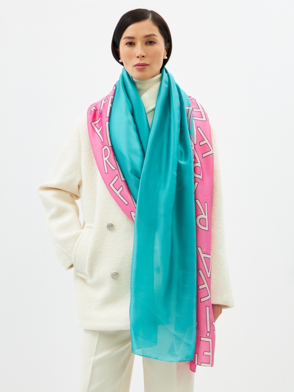 Большой, красивый двусторонний палантин с рисунком в стиле "арт-деко" и атласной текстурой ткани. Края изделия аккуратно обработаны. Машинная деликатная стирка. Полиэстер 60%, Вискоза 30%, Шелк 10%