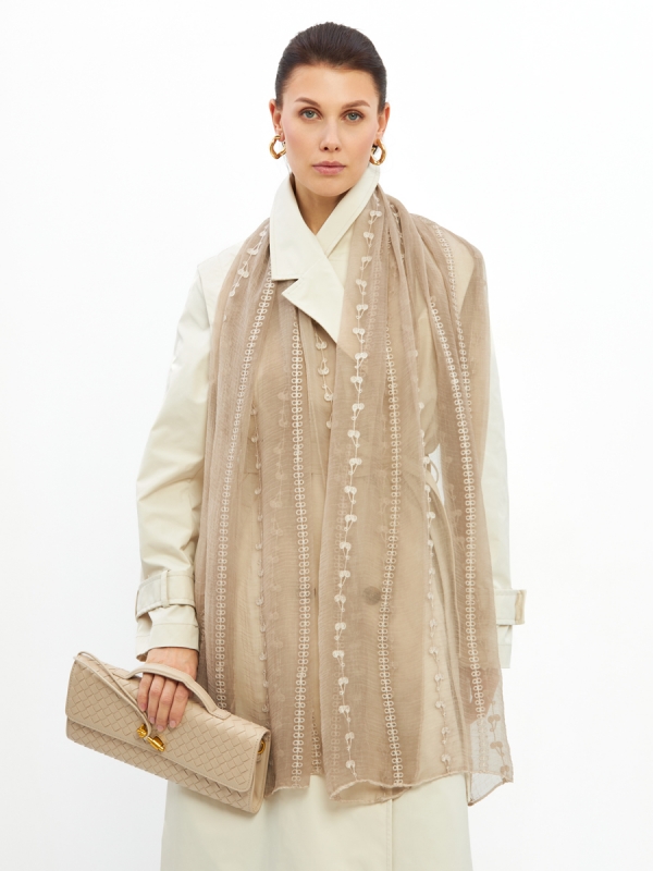 Представляем вашему вниманию элегантный палантин, который станет жемчужиной ассортимента вашего бутика или шоурума. Этот двусторонний аксессуар, созданный из тончайшего жатого шифона, приковывает взгляд своей утонченностью и эксклюзивным дизайном.Мы, как российский производитель полного цикла, гарантируем безупречное качество каждого изделия. Данный палантин отличает не только высококачественная ткань, но и уникальная вышивка в стиле «арт-деко», придающая ему особую роскошь и узнаваемость. Аккуратная обработка краев свидетельствует о внимании к деталям и премиальном уровне исполнения.Его универсальность позволяет гармонично дополнять как деловые, так и вечерние образы, что делает его крайне востребованным среди ваших покупательниц. Легкий, струящийся шифон приятен к телу и обеспечивает комфорт в любое время года.Преимущества для оптовых закупок:Высокий спрос: актуальный дизайн и премиальное качество обеспечивают быструю реализацию.Эксклюзивность: уникальный рисунок вышивки «арт-деко» выделяет изделие на рынке.Долговечность и уход: тонкий, но прочный материал, рекомендована деликатная машинная стирка, что упрощает уход для конечного потребителя.Гарантия качества: собственное производство обеспечивает контроль на всех этапах, от конструирования до пошива.Увеличение среднего чека: стильный аксессуар, который легко предложить в комплекте к платьям или блузкам.Предложите вашим клиентам не просто палантин, а произведение искусства, способное трансформировать любой образ. Расширьте свой ассортимент за счет продукции, проверенной временем и пользующейся спросом у ценителей стиля и качества. Полиэстер 35%, Вискоза 30%, Модал 25%, Шелк 10%