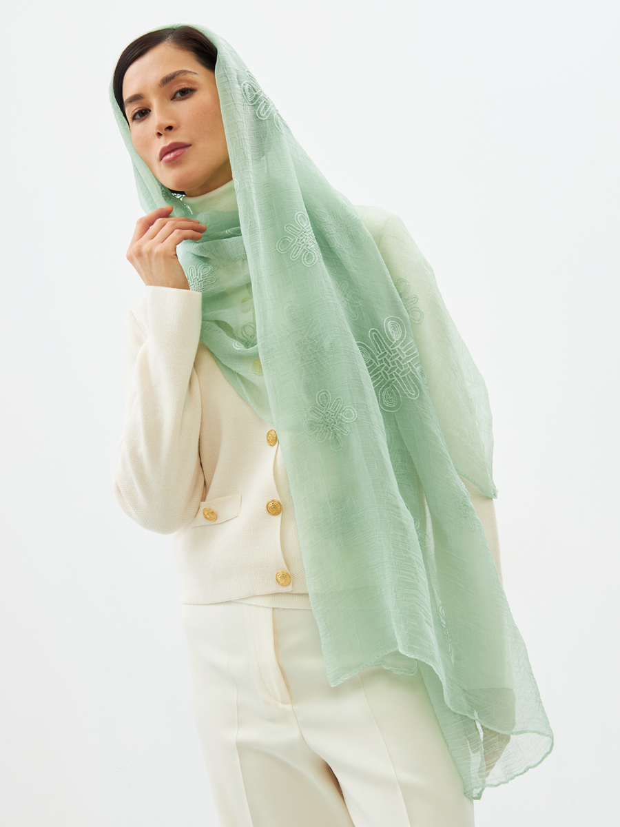 Палантин женский двусторонний с вышивкой Арт-деко