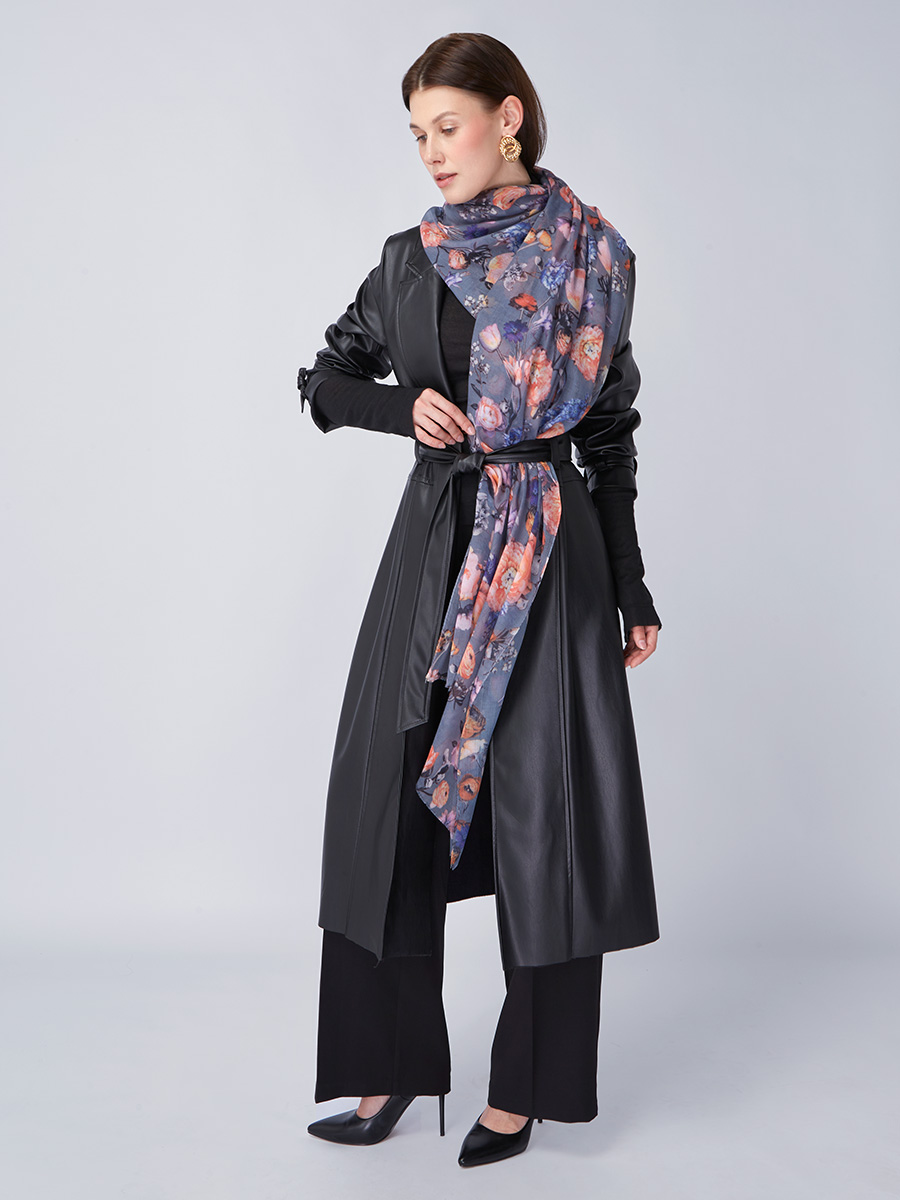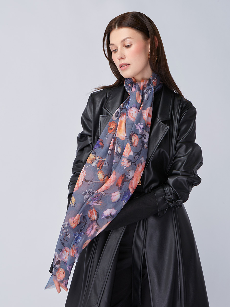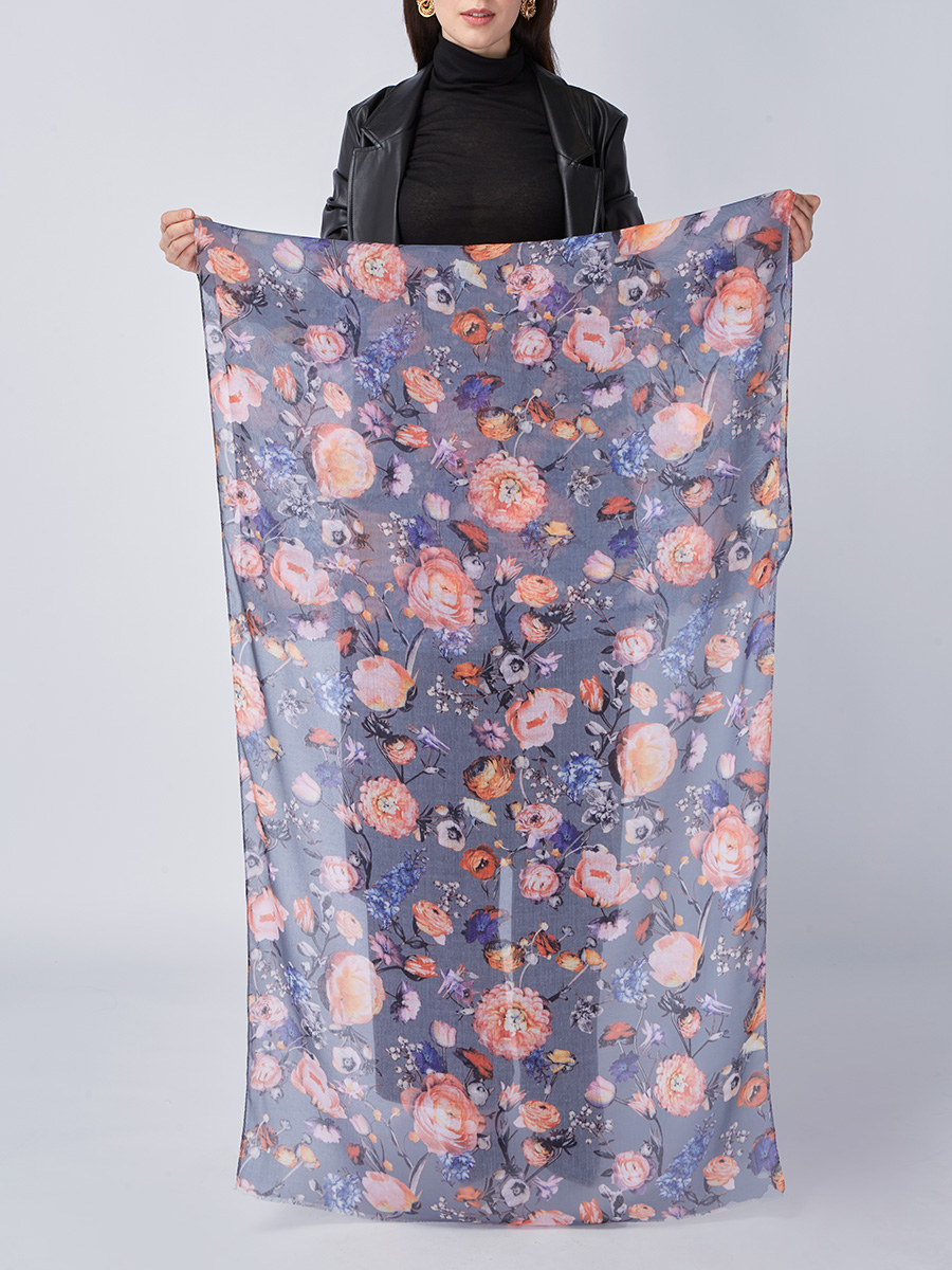 Большой, мягкий, тонкий и очень нежный палантин с рисунком. Только ручная стирка. 55% полиэстер, 35% вискоза, 10% шелк