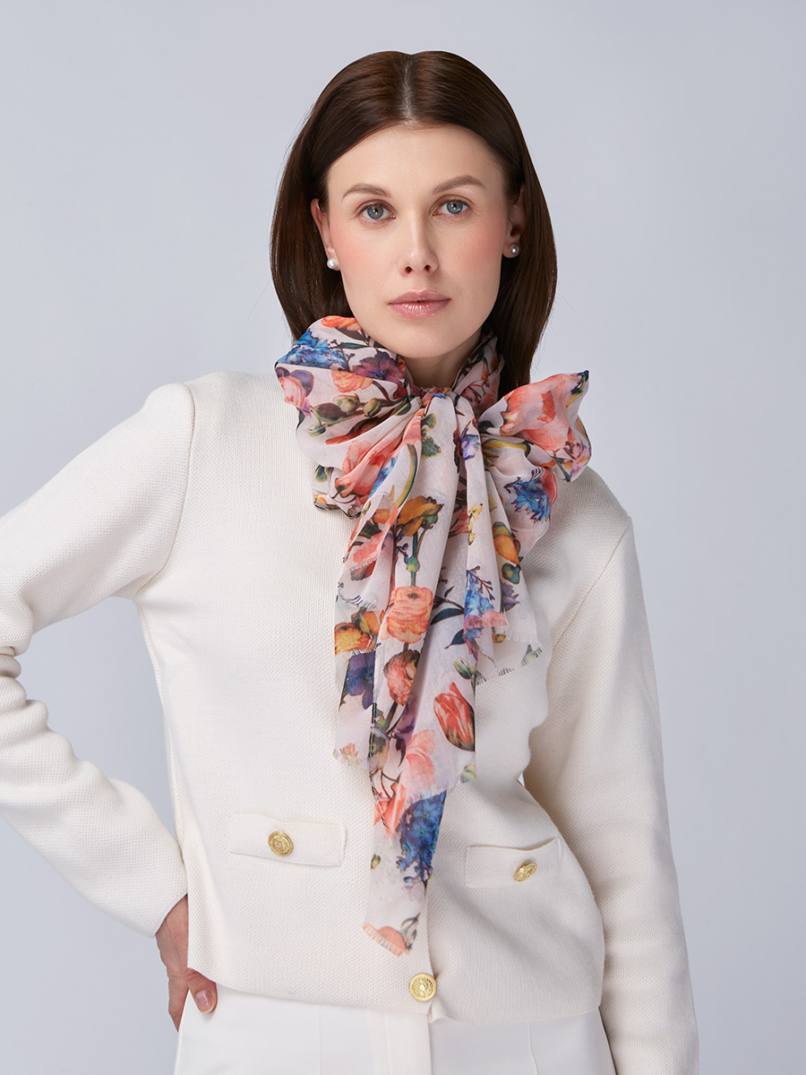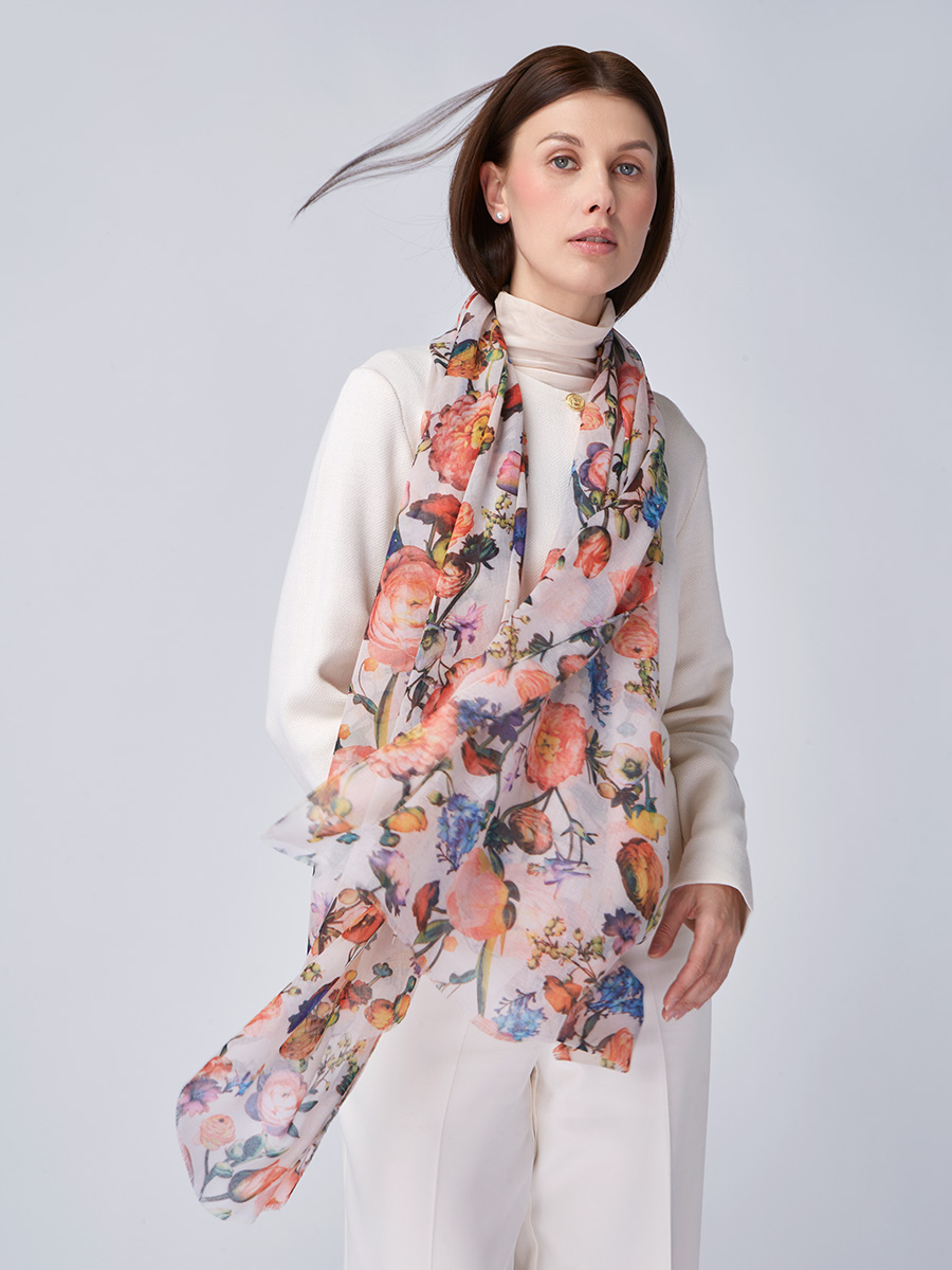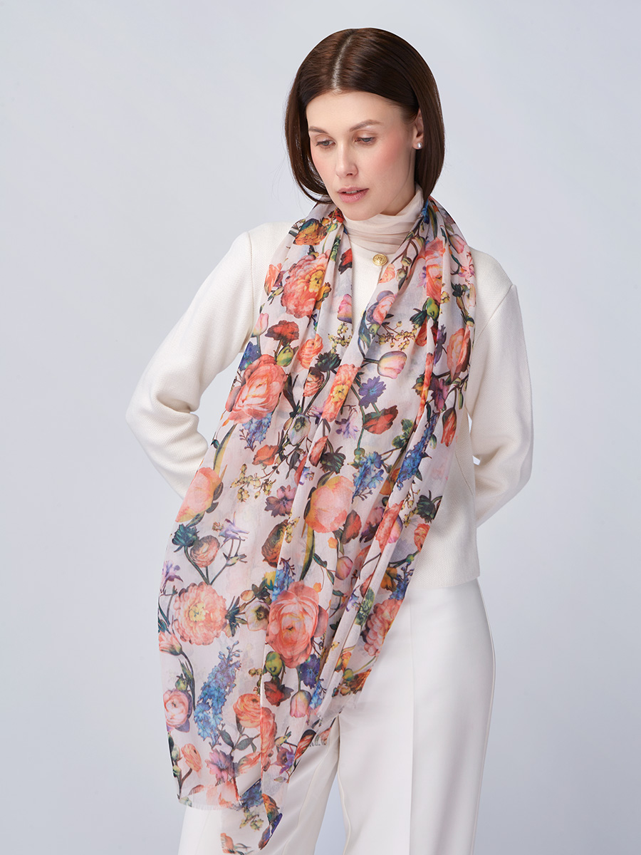 Большой, мягкий, тонкий и очень нежный палантин с рисунком. Только ручная стирка. 55% полиэстер, 35% вискоза, 10% шелк