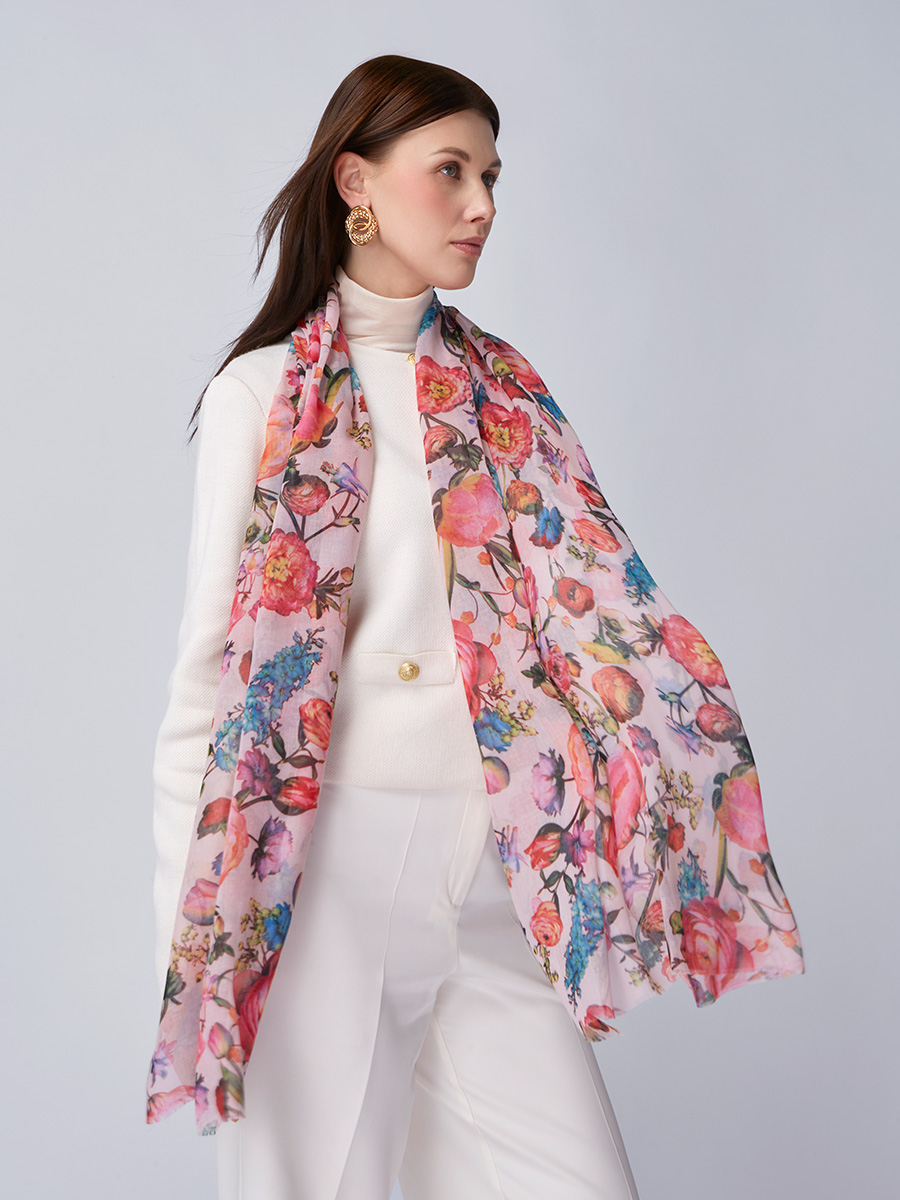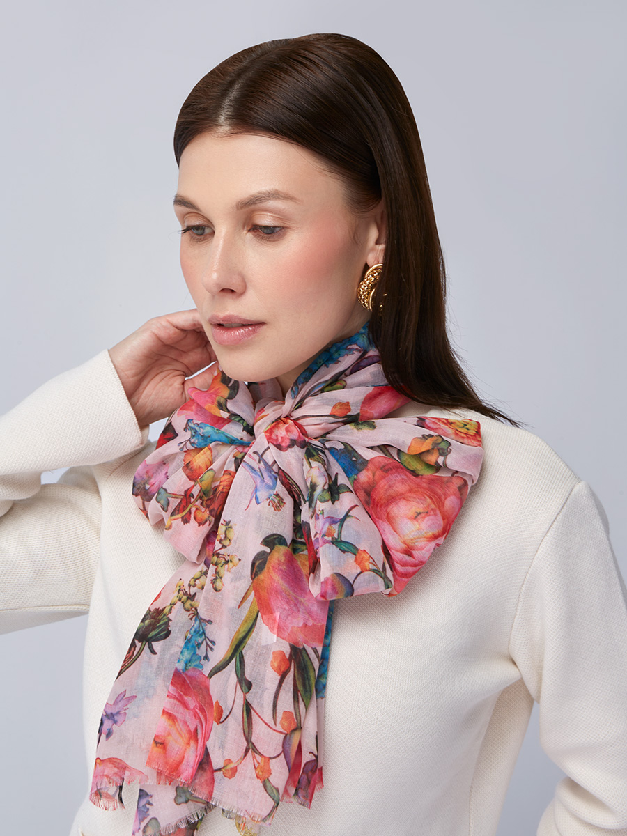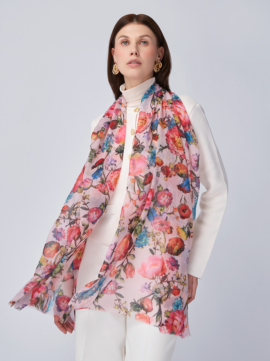 Большой, мягкий, тонкий и очень нежный палантин с рисунком. Только ручная стирка. 55% полиэстер, 35% вискоза, 10% шелк