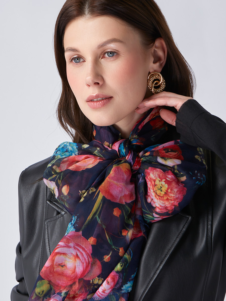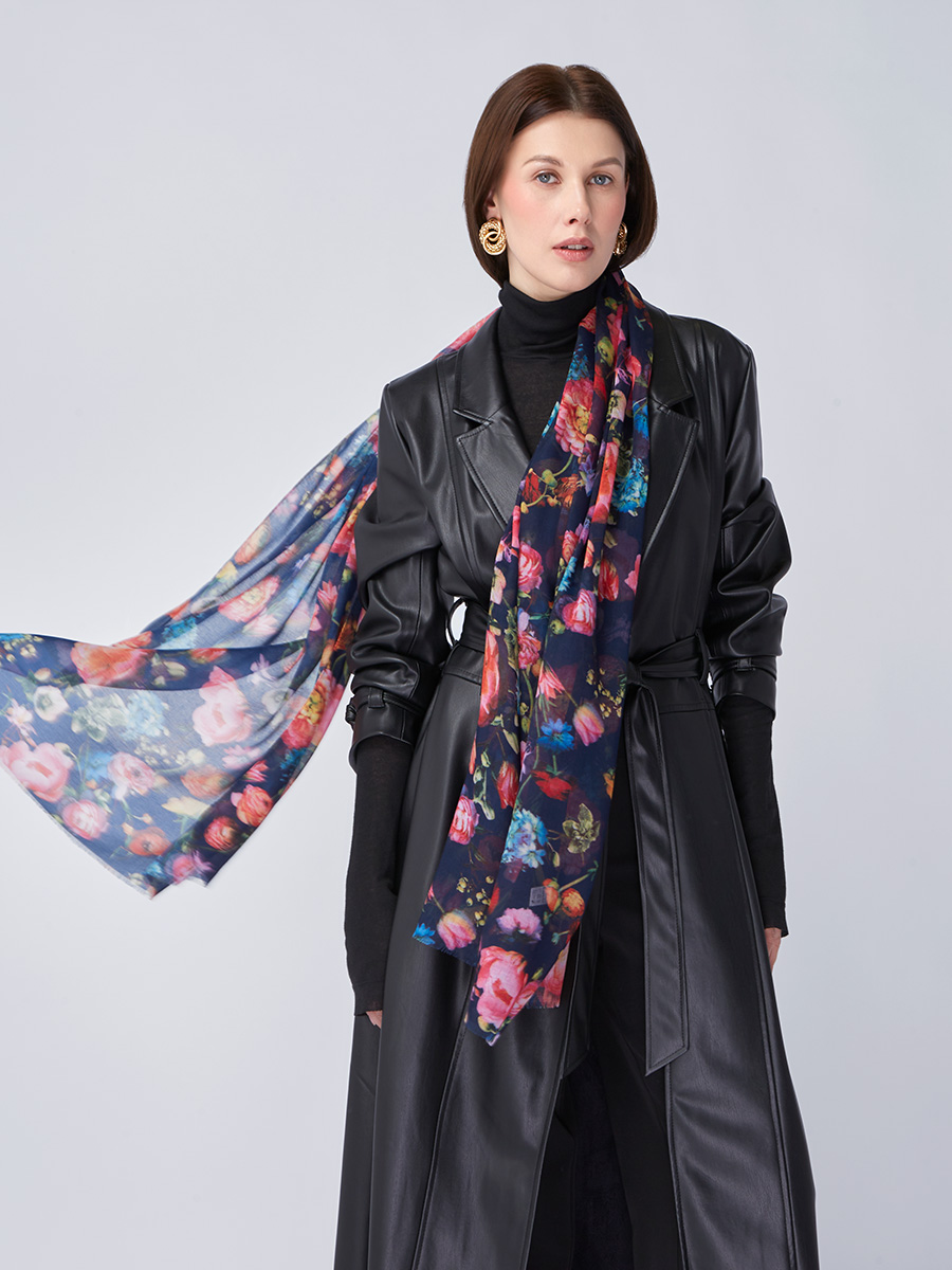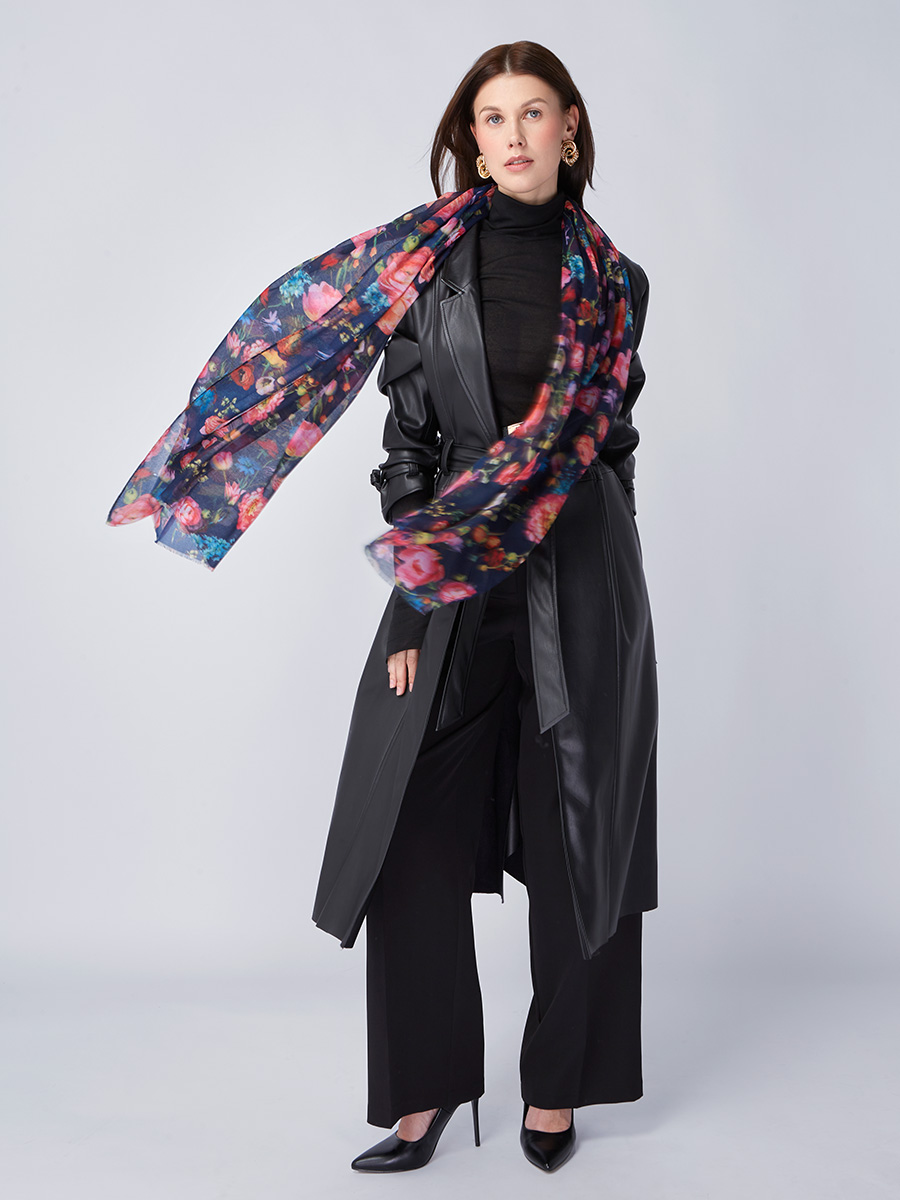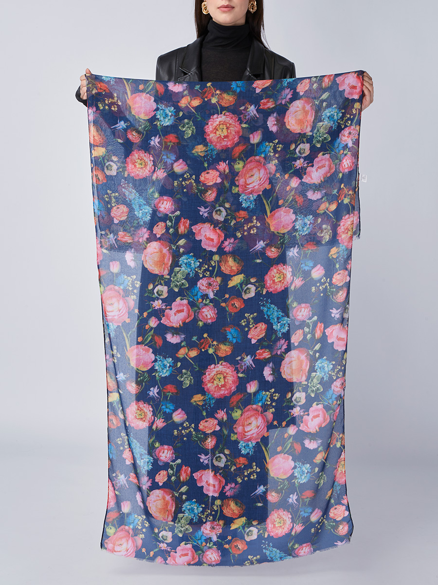 Большой, мягкий, тонкий и очень нежный палантин с рисунком. Только ручная стирка. 55% полиэстер, 35% вискоза, 10% шелк