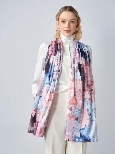 Большой, мягкий, тонкий и очень нежный палантин с рисунком. Только ручная стирка. 55% полиэстер, 35% вискоза, 10% шелк