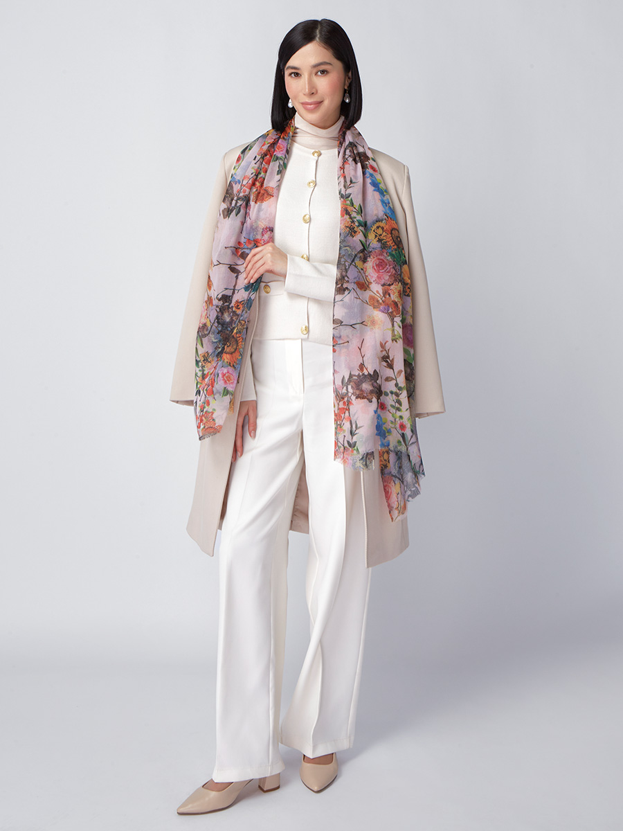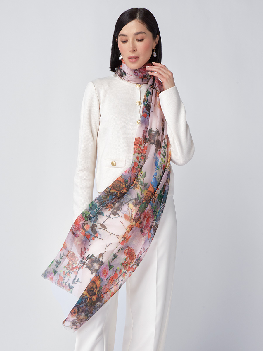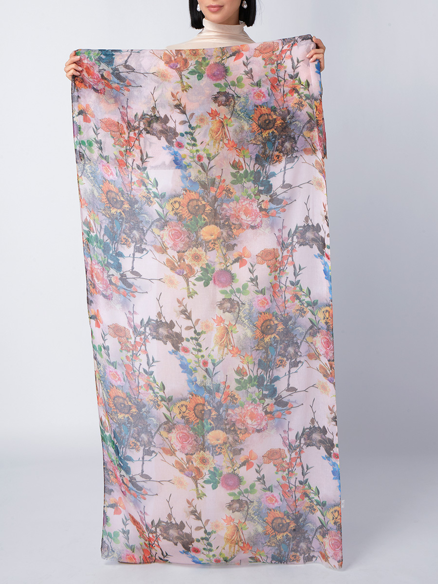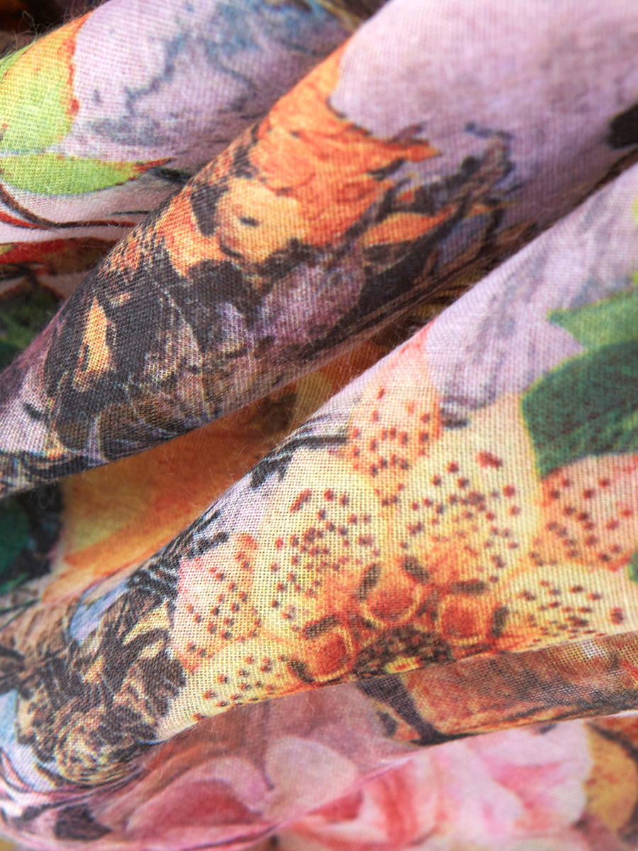 Большой, мягкий, тонкий и очень нежный палантин с рисунком. Только ручная стирка. 55% полиэстер, 35% вискоза, 10% шелк