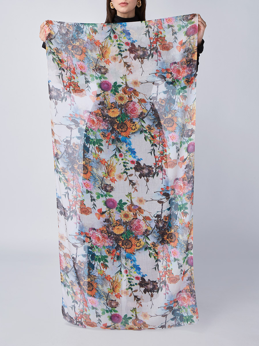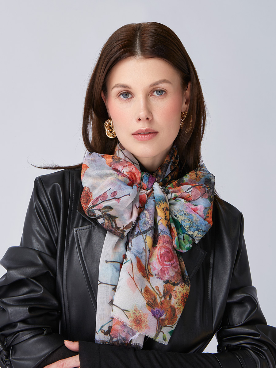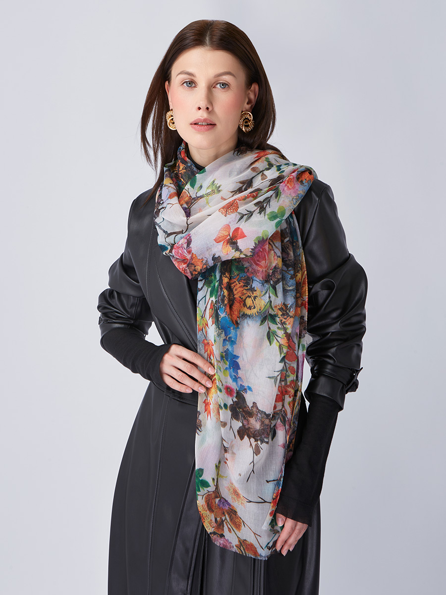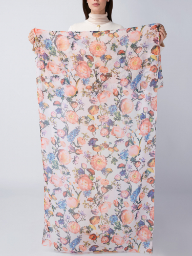 Большой, мягкий, тонкий и очень нежный палантин с рисунком. Только ручная стирка. 55% полиэстер, 35% вискоза, 10% шелк