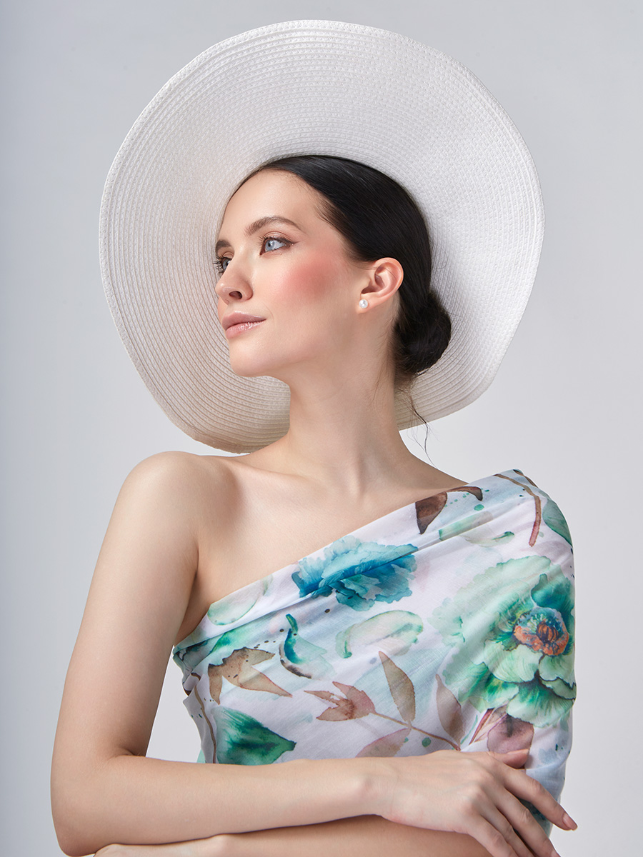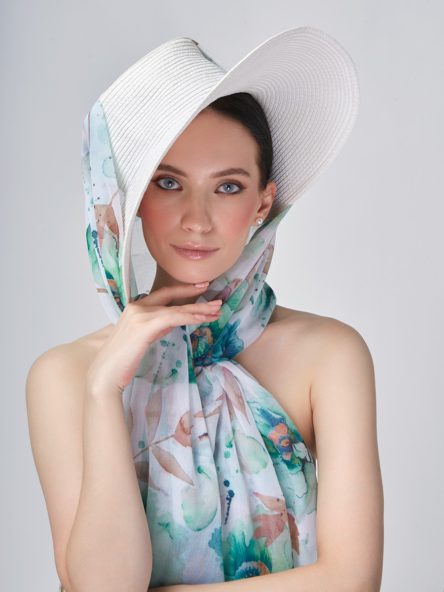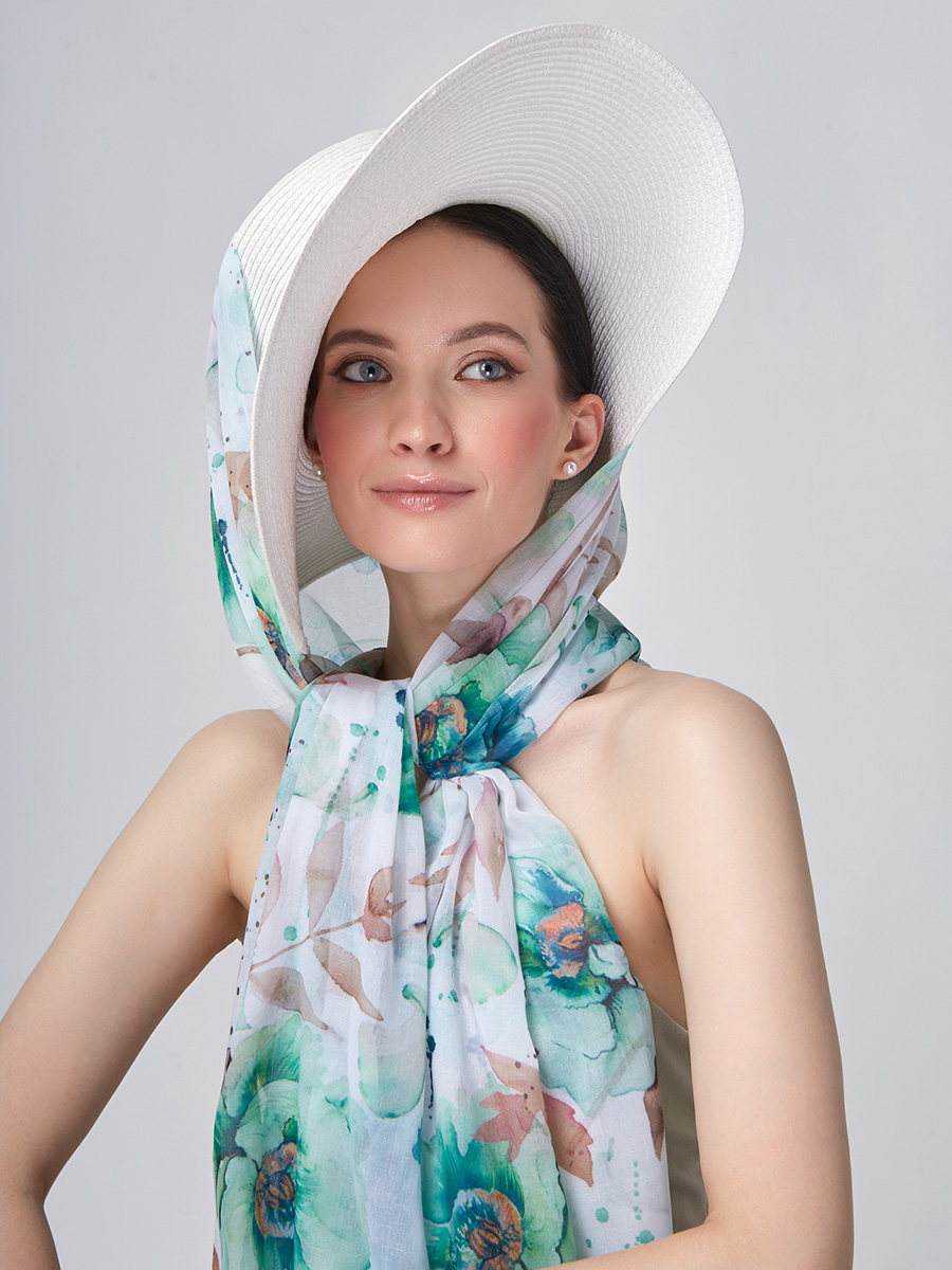 Большой, мягкий, тонкий и очень нежный палантин с рисунком. Только ручная стирка. 55% полиэстер, 35% вискоза, 10% шелк