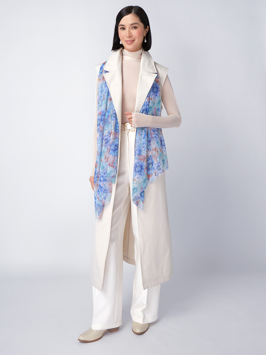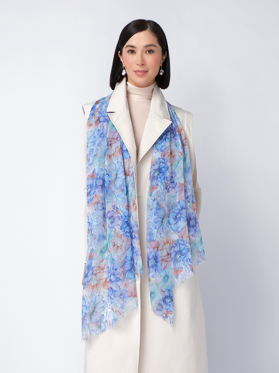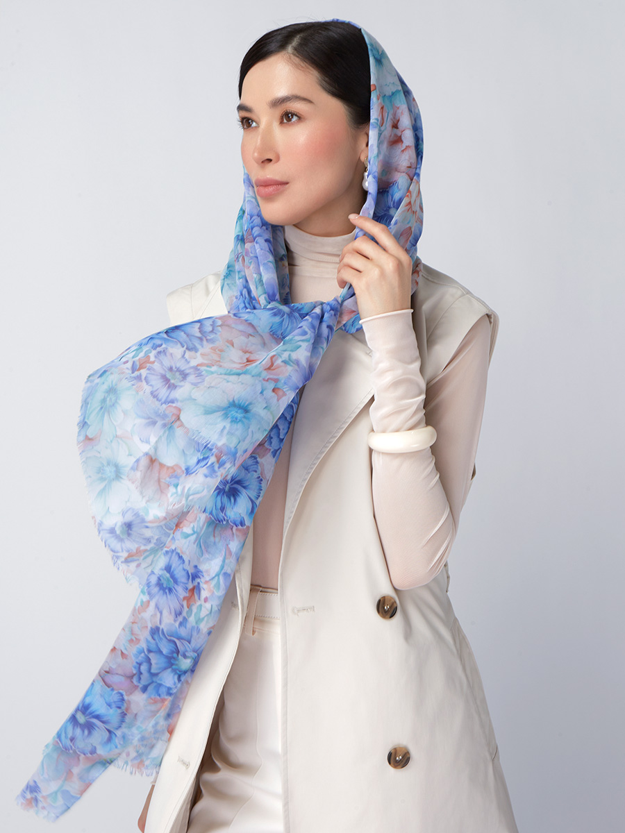 Большой, мягкий, тонкий и очень нежный палантин с рисунком. Только ручная стирка. 55% полиэстер, 35% вискоза, 10% шелк