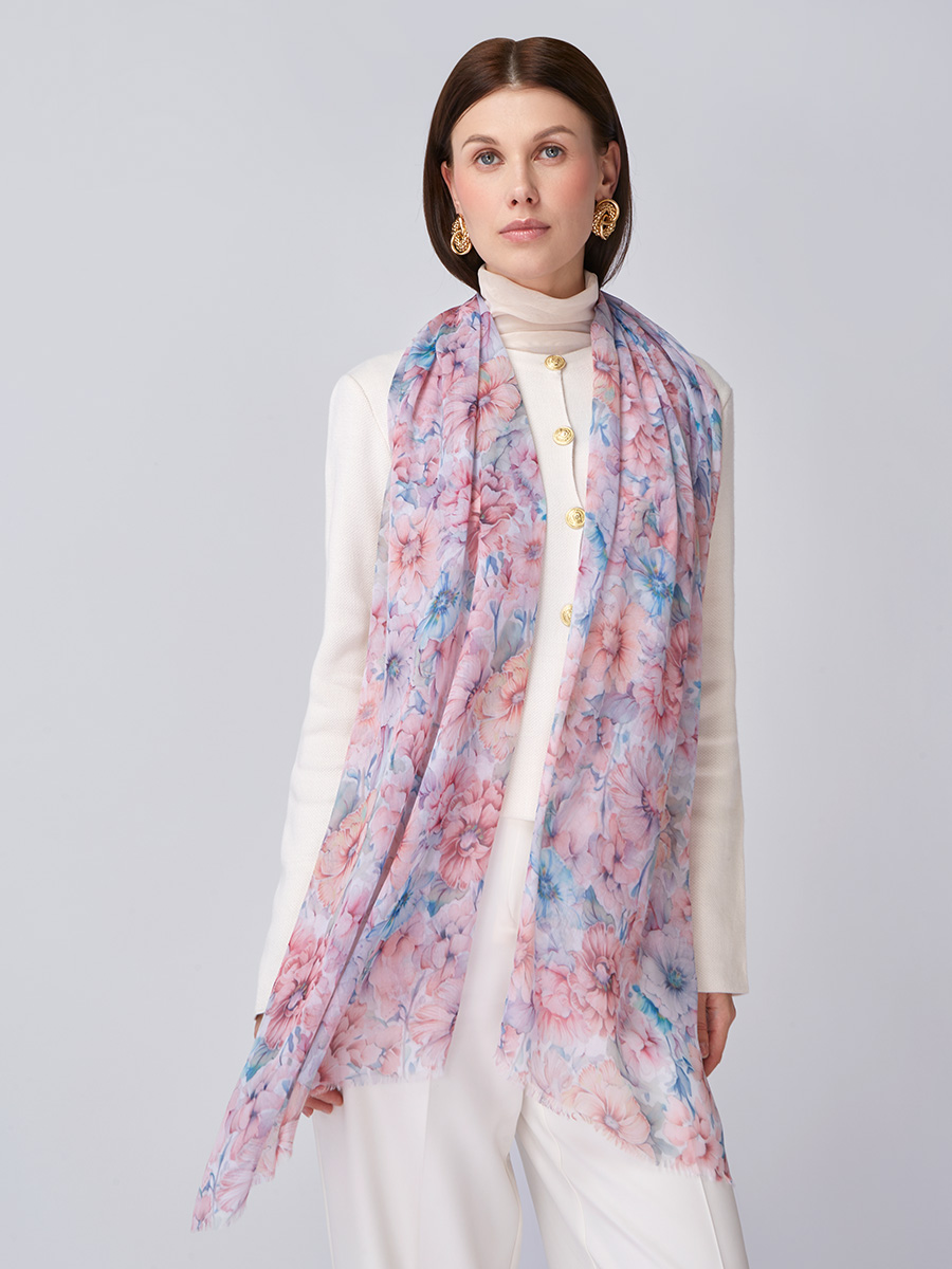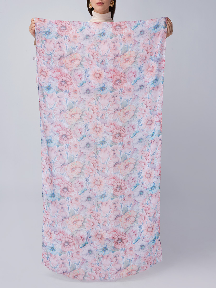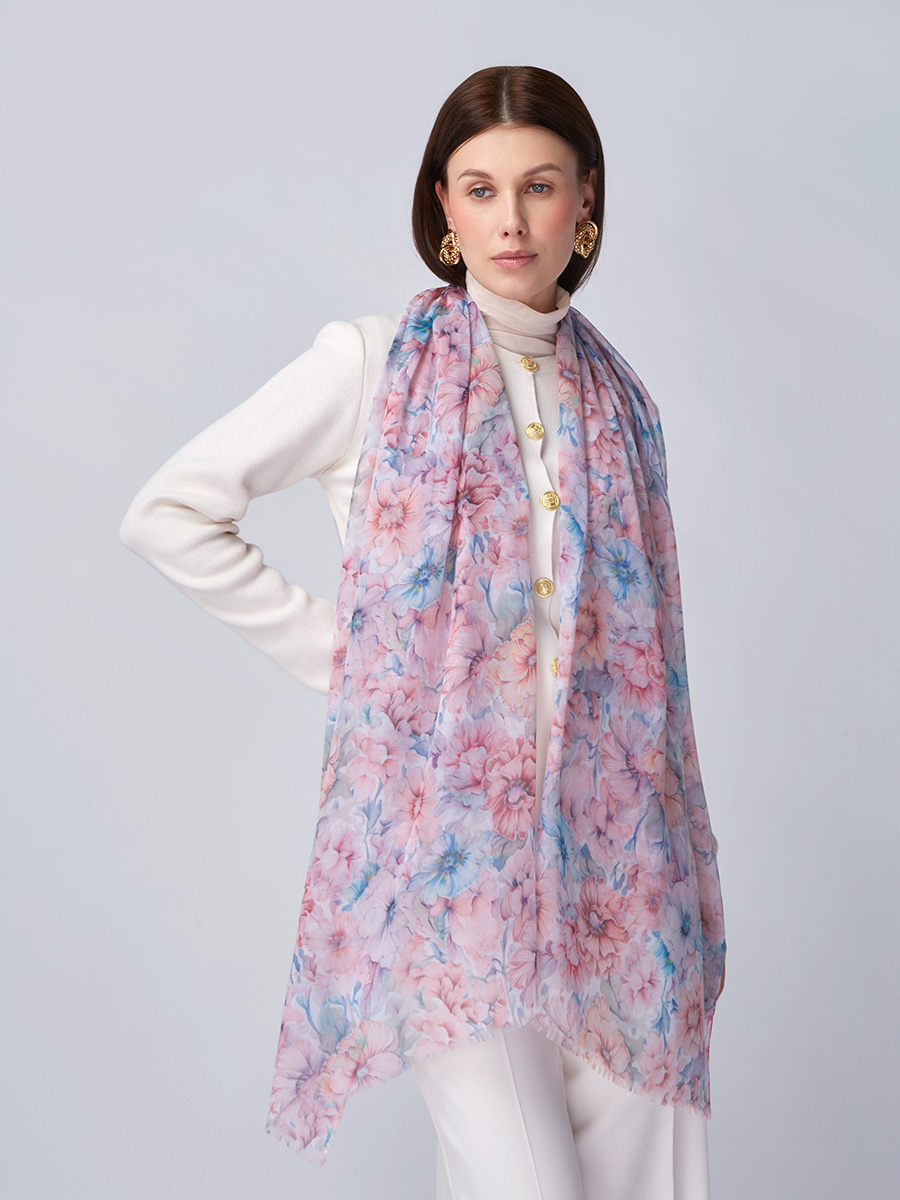 Большой, мягкий, тонкий и очень нежный палантин с рисунком. Только ручная стирка. 55% полиэстер, 35% вискоза, 10% шелк