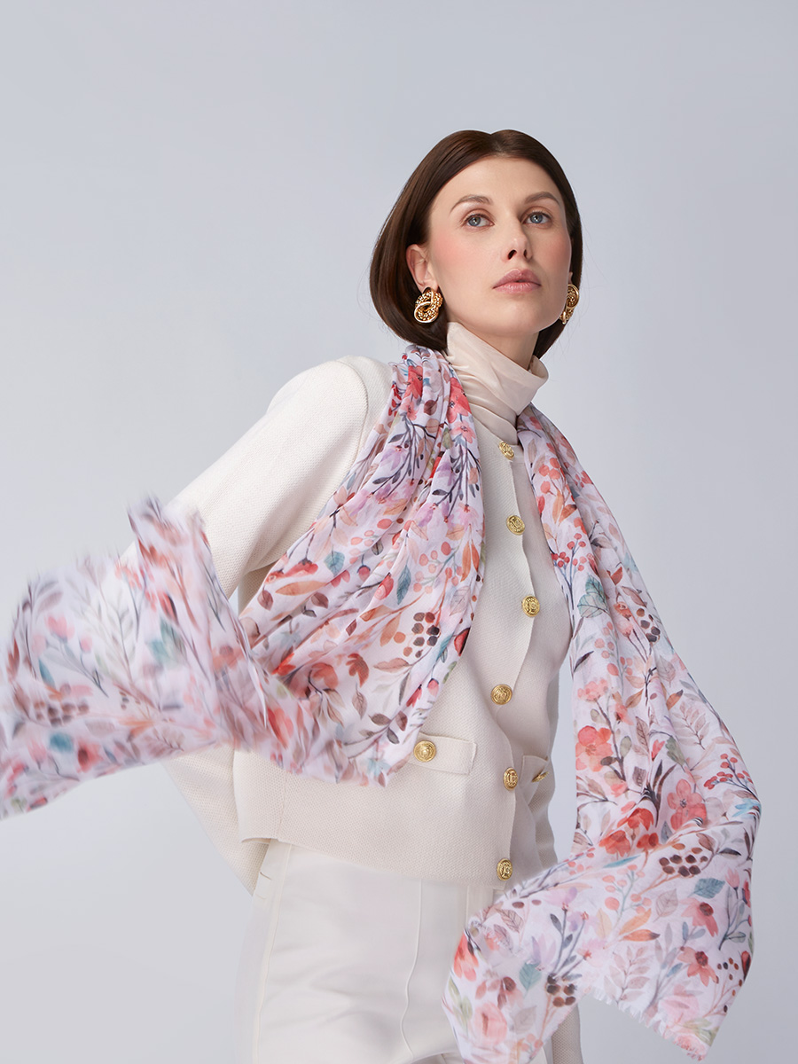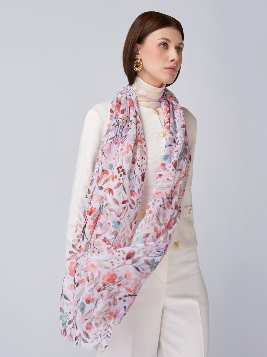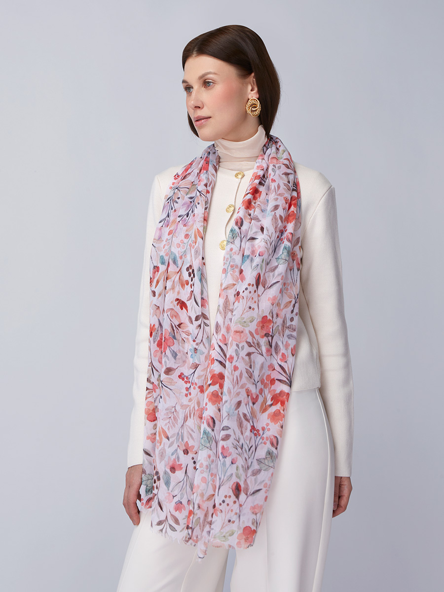 Большой, мягкий, тонкий и очень нежный палантин с рисунком. Только ручная стирка. 55% полиэстер, 35% вискоза, 10% шелк