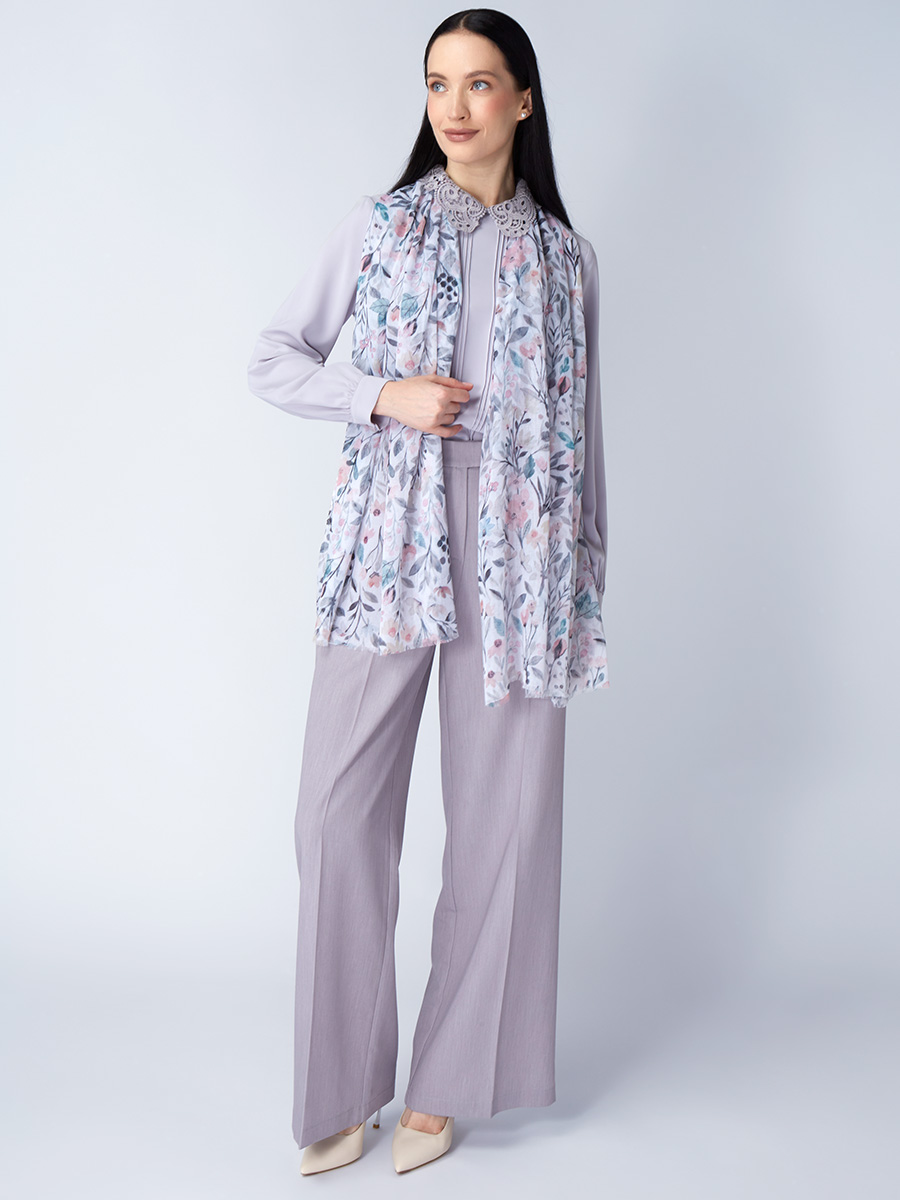 Большой, мягкий, тонкий и очень нежный палантин с рисунком. Только ручная стирка. 55% полиэстер, 35% вискоза, 10% шелк