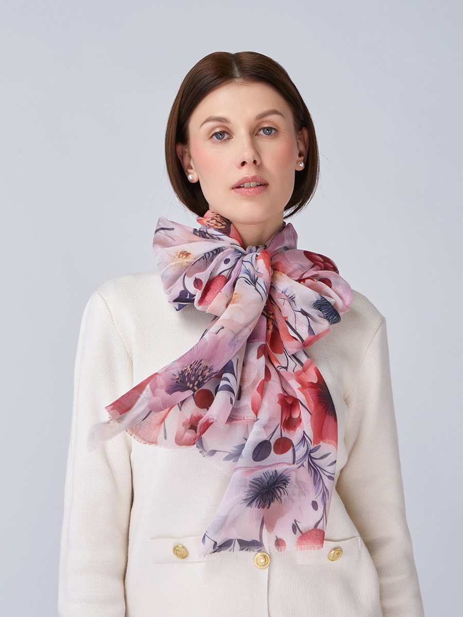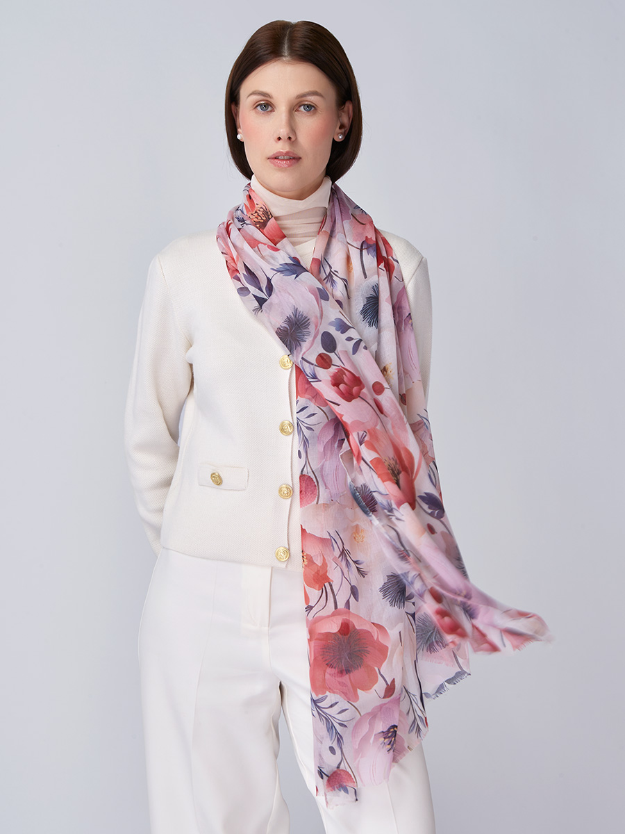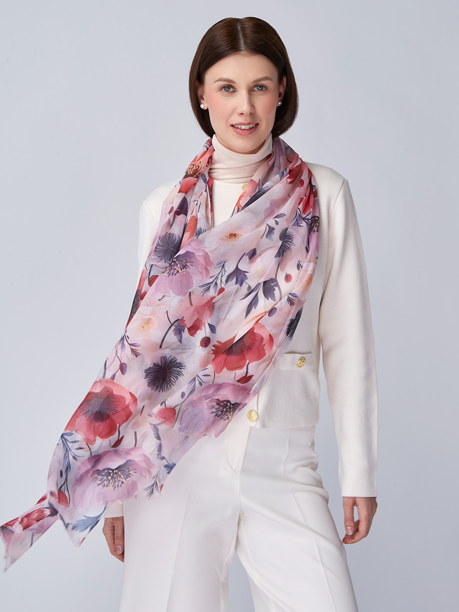 Большой, мягкий, тонкий и очень нежный палантин с рисунком. Только ручная стирка. 55% полиэстер, 35% вискоза, 10% шелк