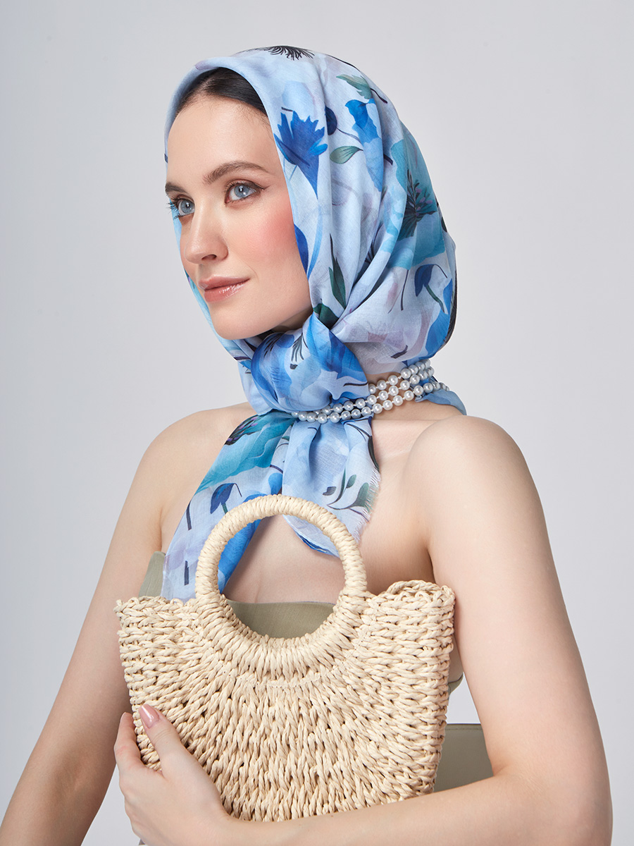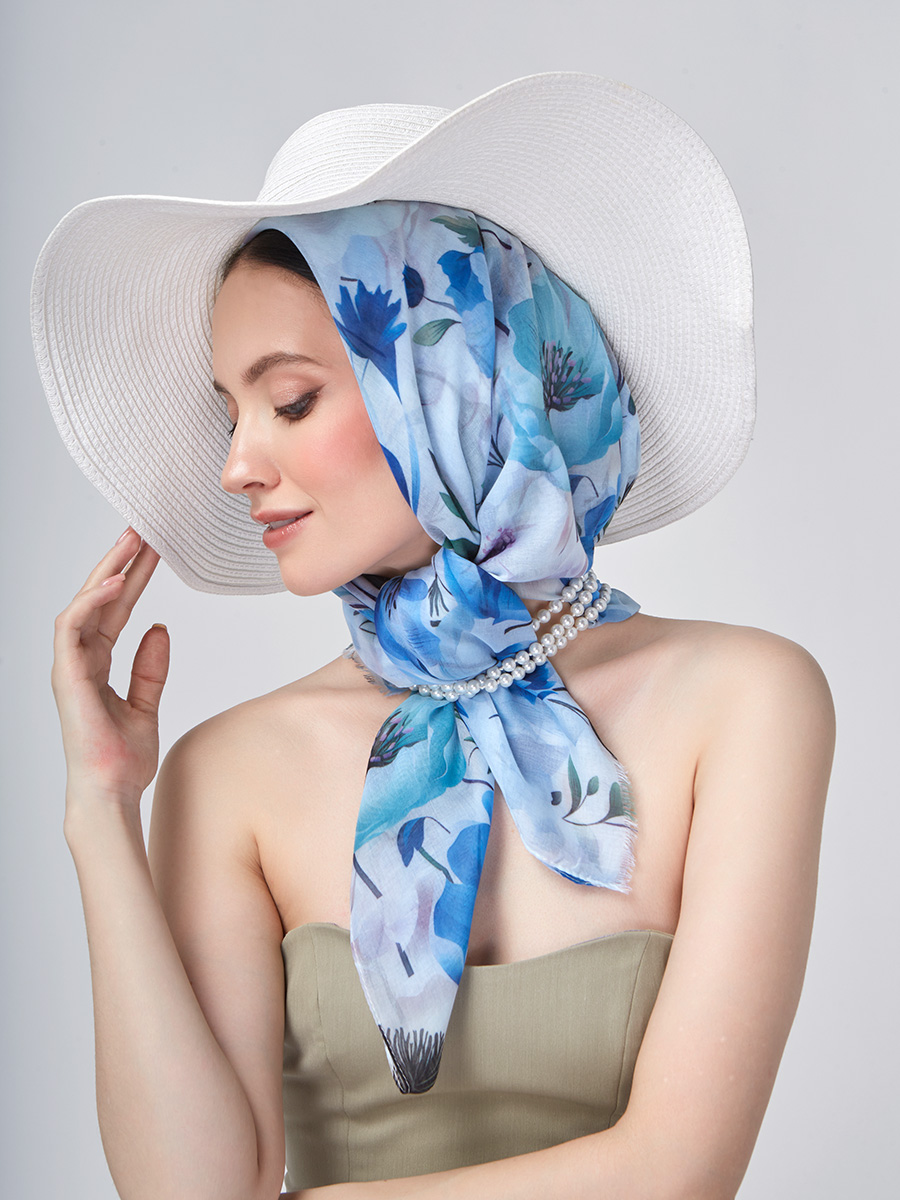 Большой, мягкий, тонкий и очень нежный палантин с рисунком. Только ручная стирка. 55% полиэстер, 35% вискоза, 10% шелк