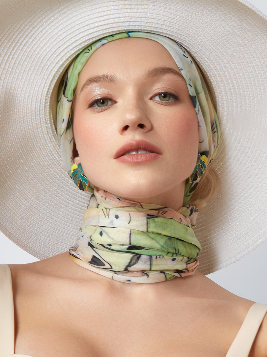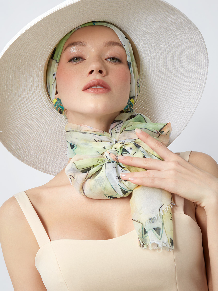Большой, мягкий, тонкий и очень нежный палантин с рисунком. Только ручная стирка. 55% полиэстер, 35% вискоза, 10% шелк