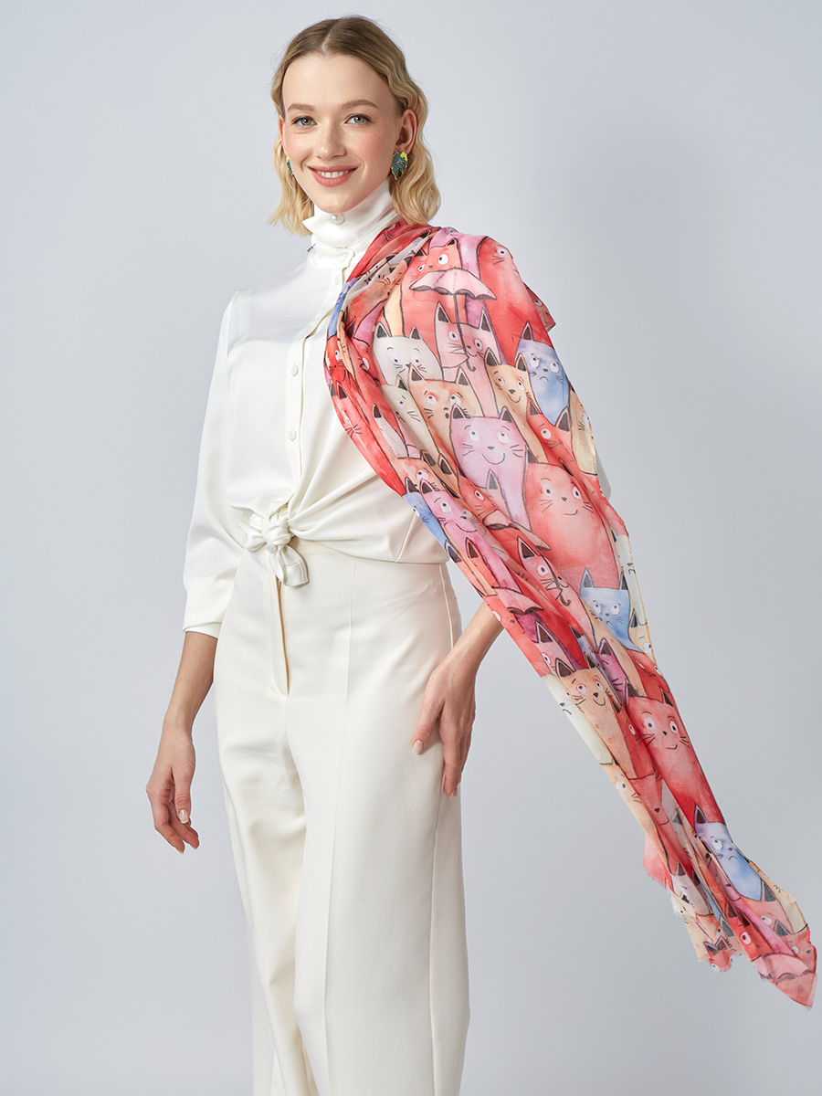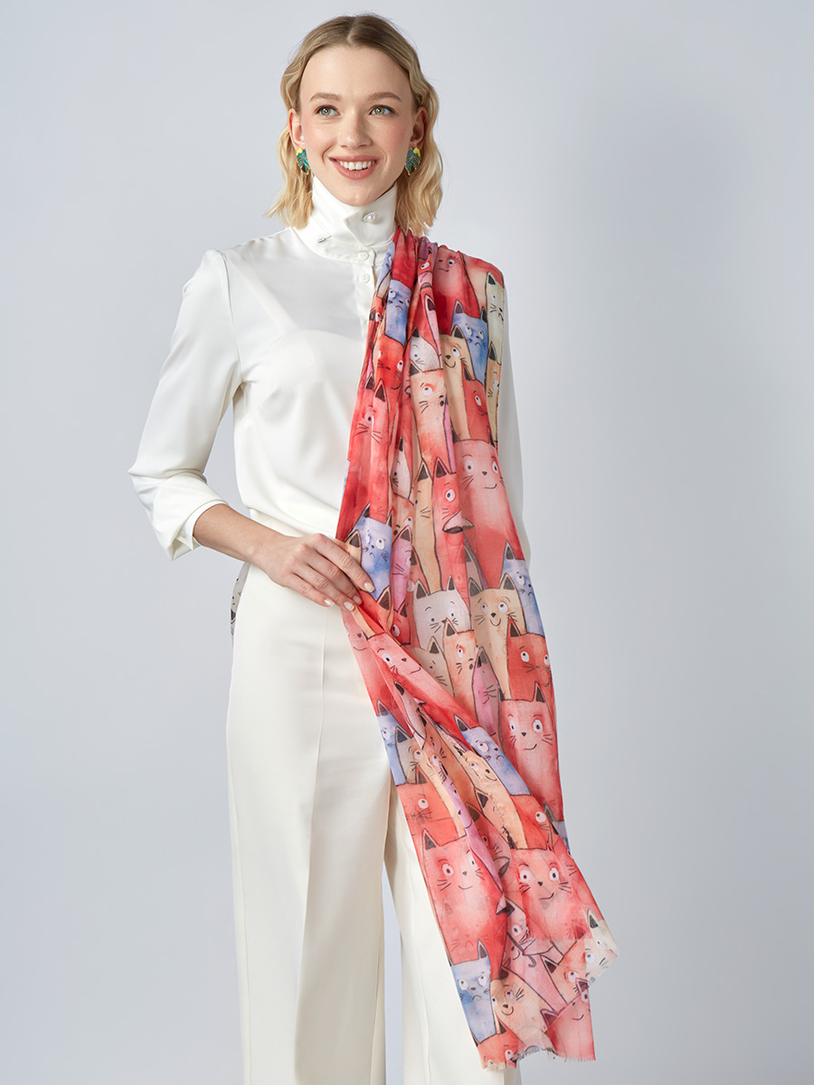 Большой, мягкий, тонкий и очень нежный палантин с рисунком. Только ручная стирка. 55% полиэстер, 35% вискоза, 10% шелк