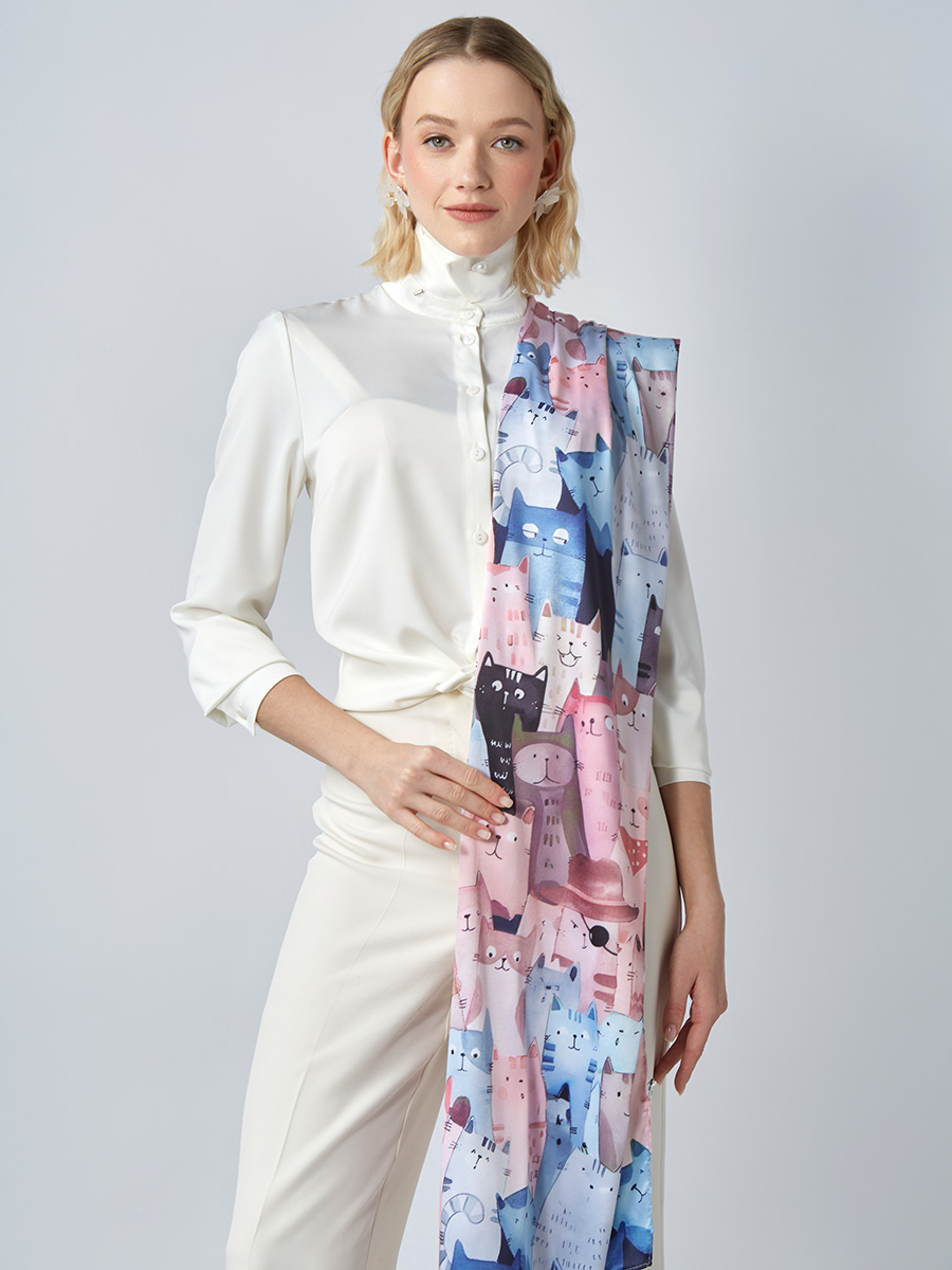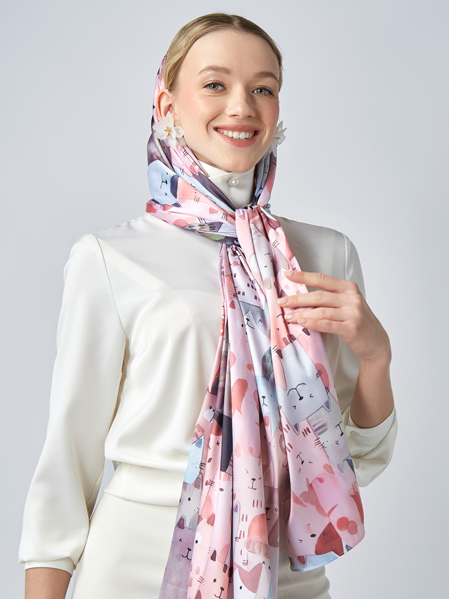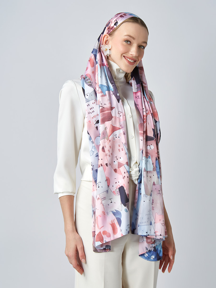 Большой, мягкий, тонкий и очень нежный палантин с рисунком. Только ручная стирка. 45% полиэстер, 35% вискоза, 20% шелк