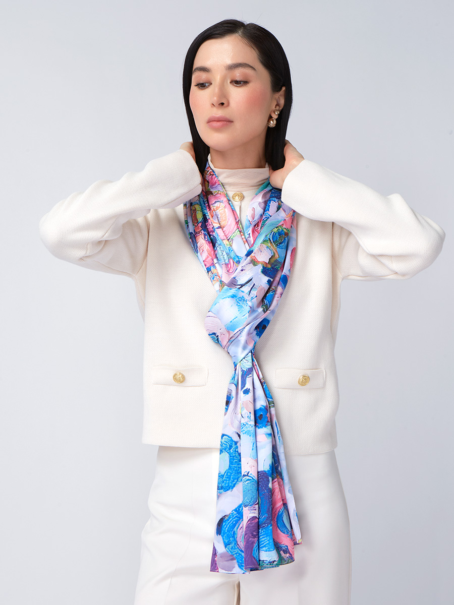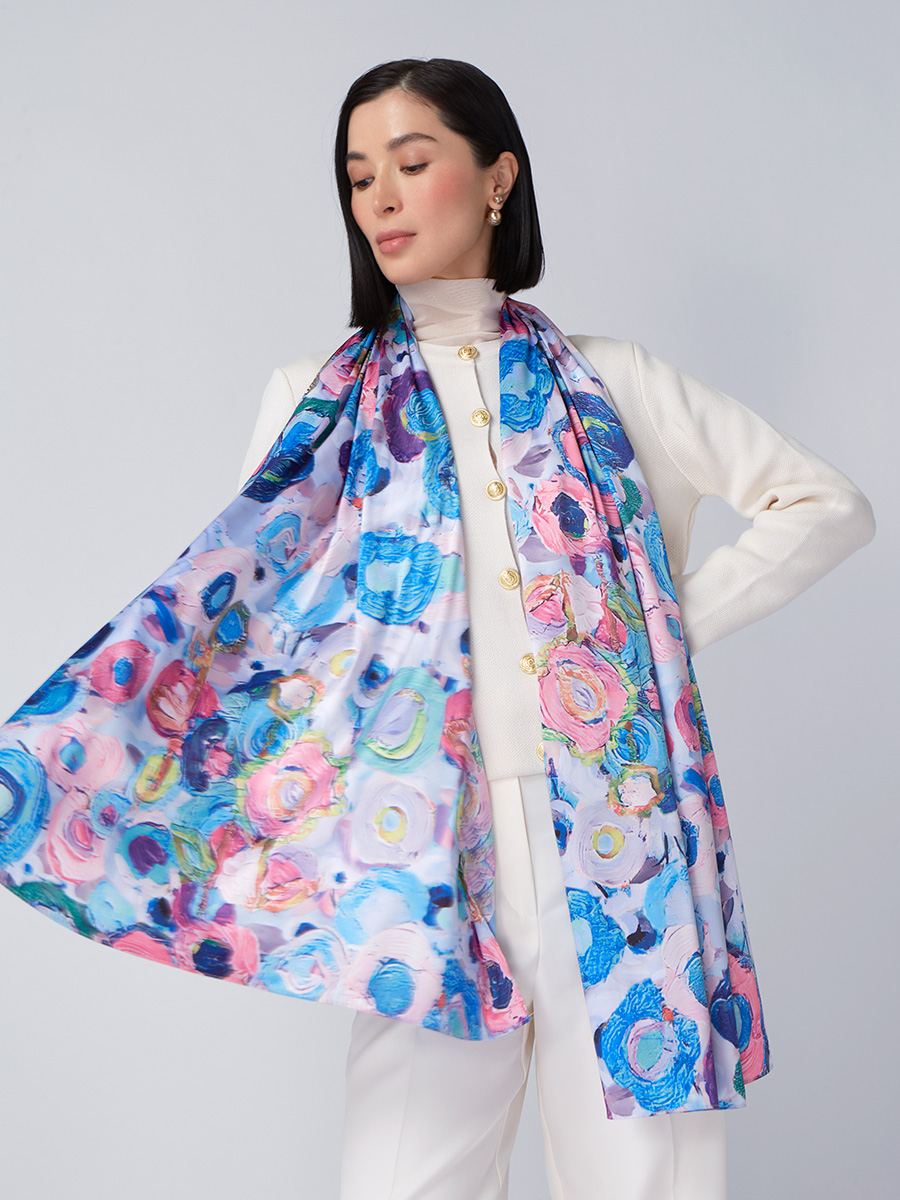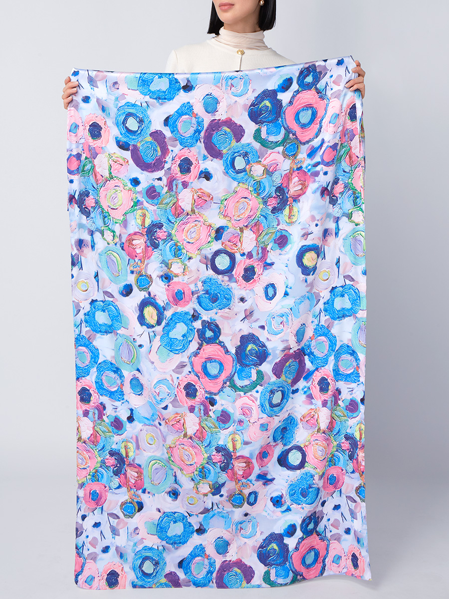 Большой, мягкий, тонкий и очень нежный палантин с рисунком. Только ручная стирка. 45% полиэстер, 35% вискоза, 20% шелк