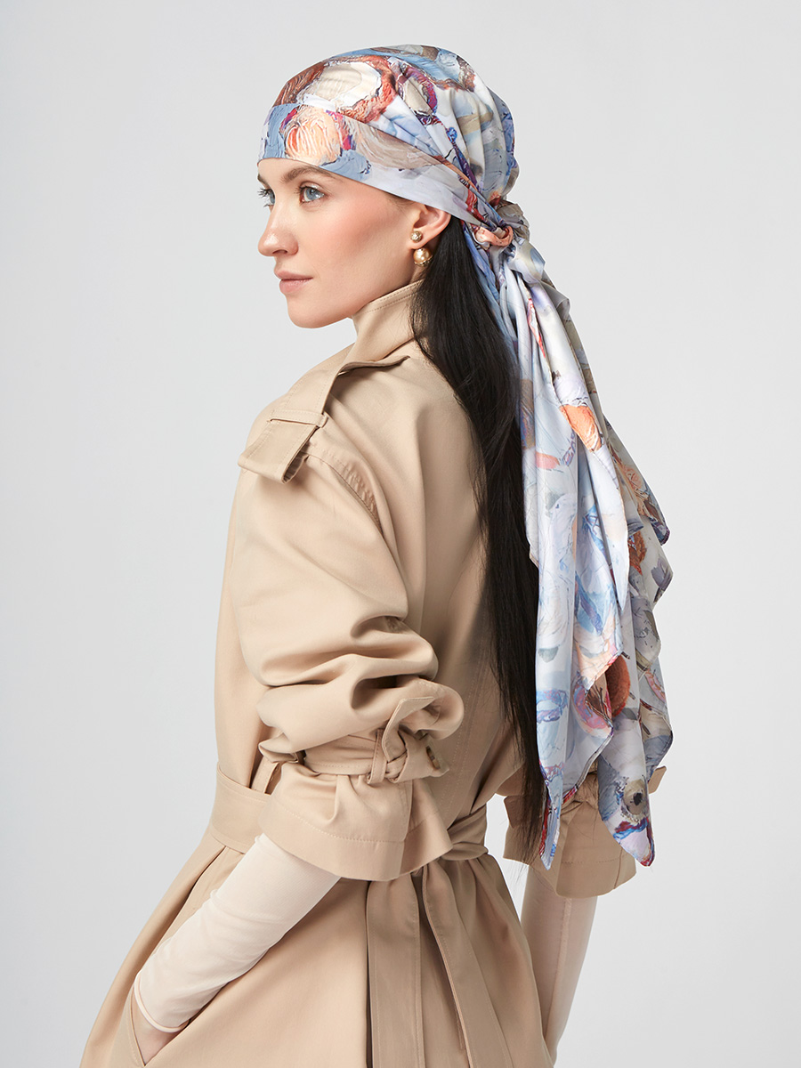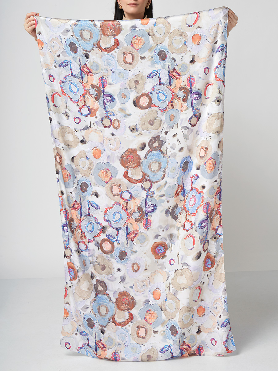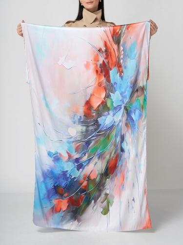 Большой, мягкий, тонкий и очень нежный палантин с рисунком. Только ручная стирка. 45% полиэстер, 35% вискоза, 20% шелк