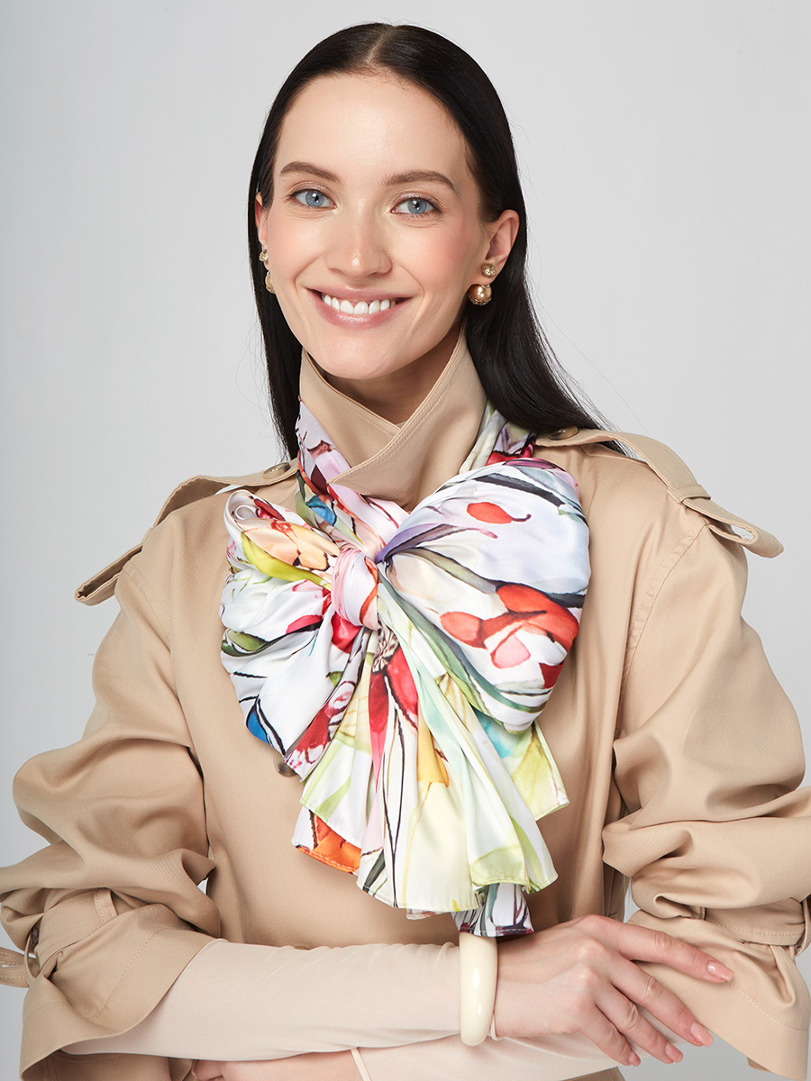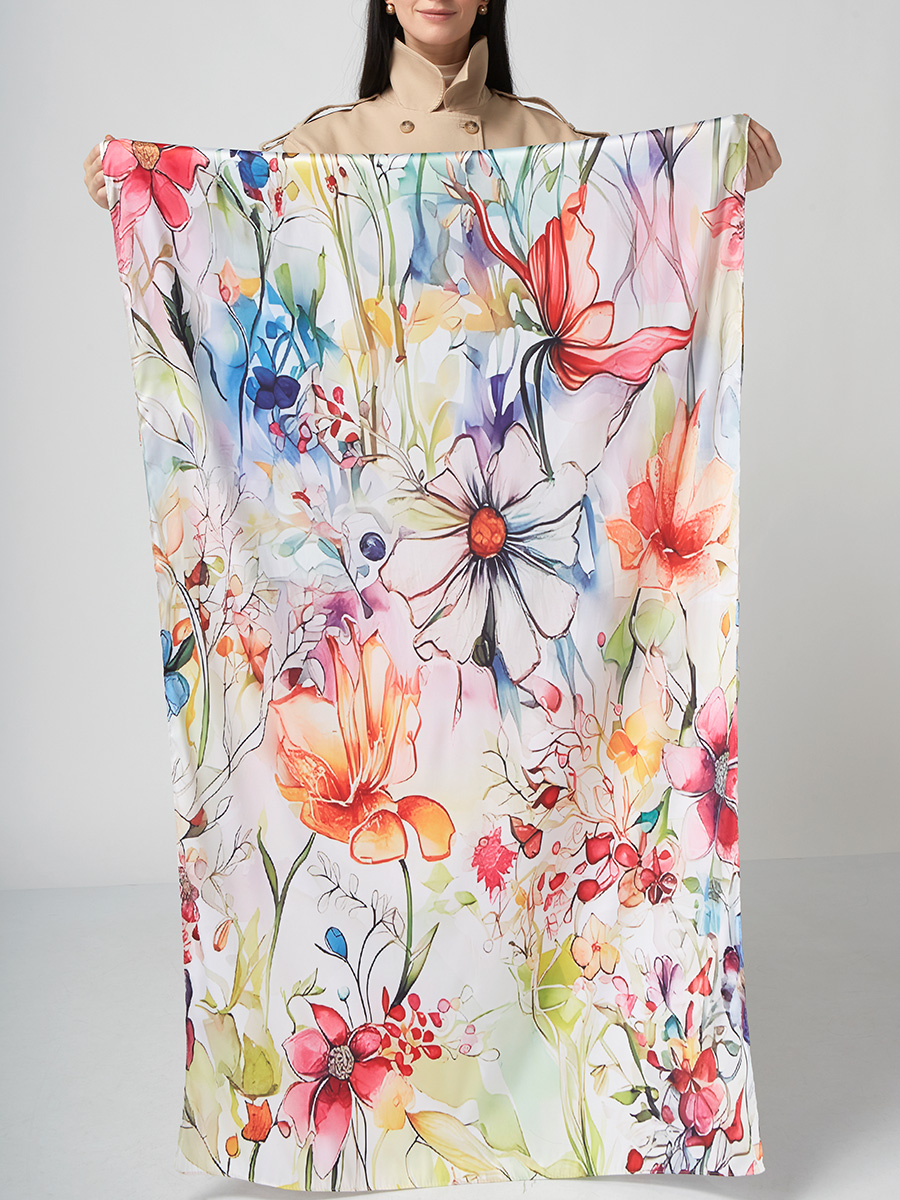 Большой, мягкий, тонкий и очень нежный палантин с рисунком. Только ручная стирка. 45% полиэстер, 35% вискоза, 20% шелк
