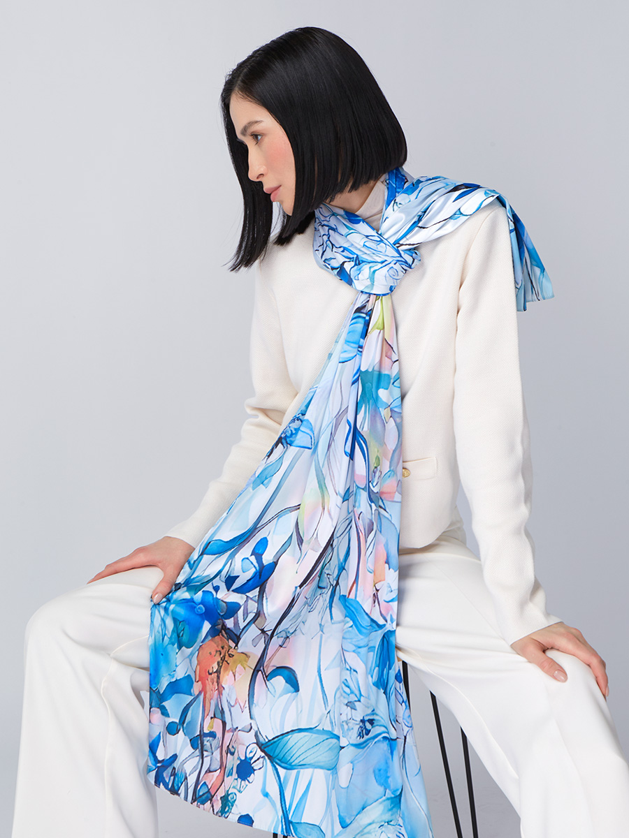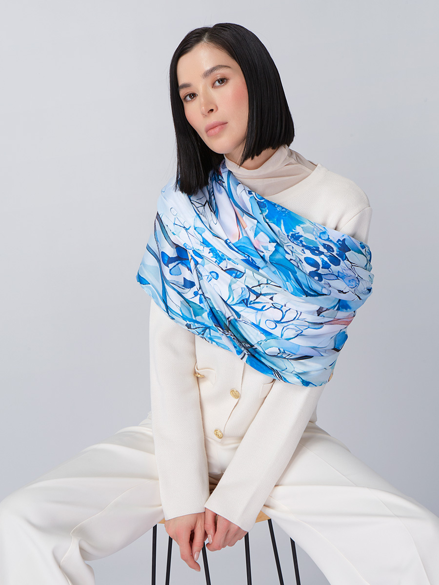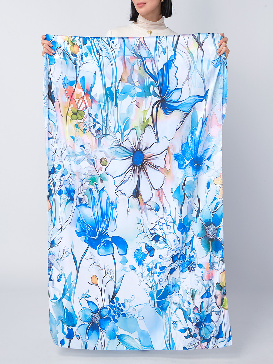 Большой, мягкий, тонкий и очень нежный палантин с рисунком. Только ручная стирка. 45% полиэстер, 35% вискоза, 20% шелк