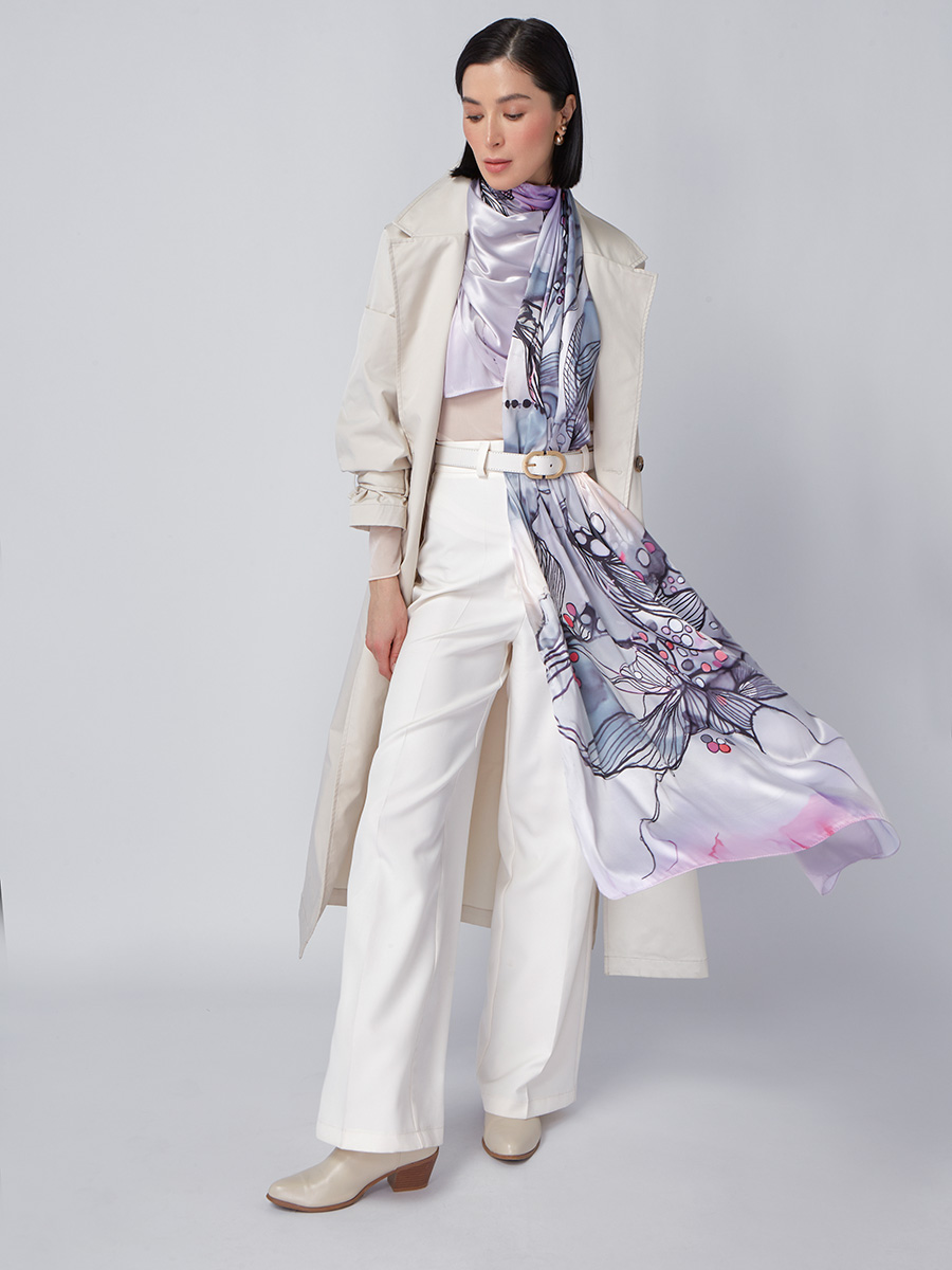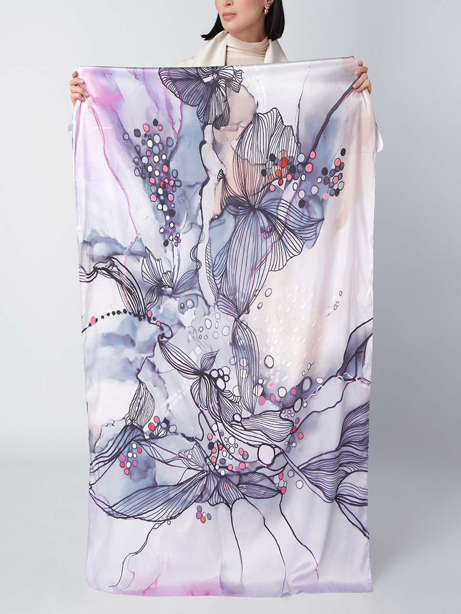 Большой, мягкий, тонкий и очень нежный палантин с рисунком. Только ручная стирка. 45% полиэстер, 35% вискоза, 20% шелк