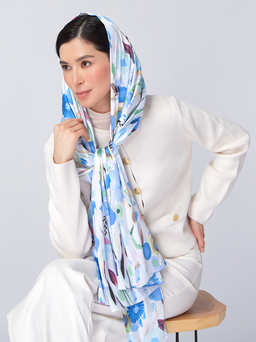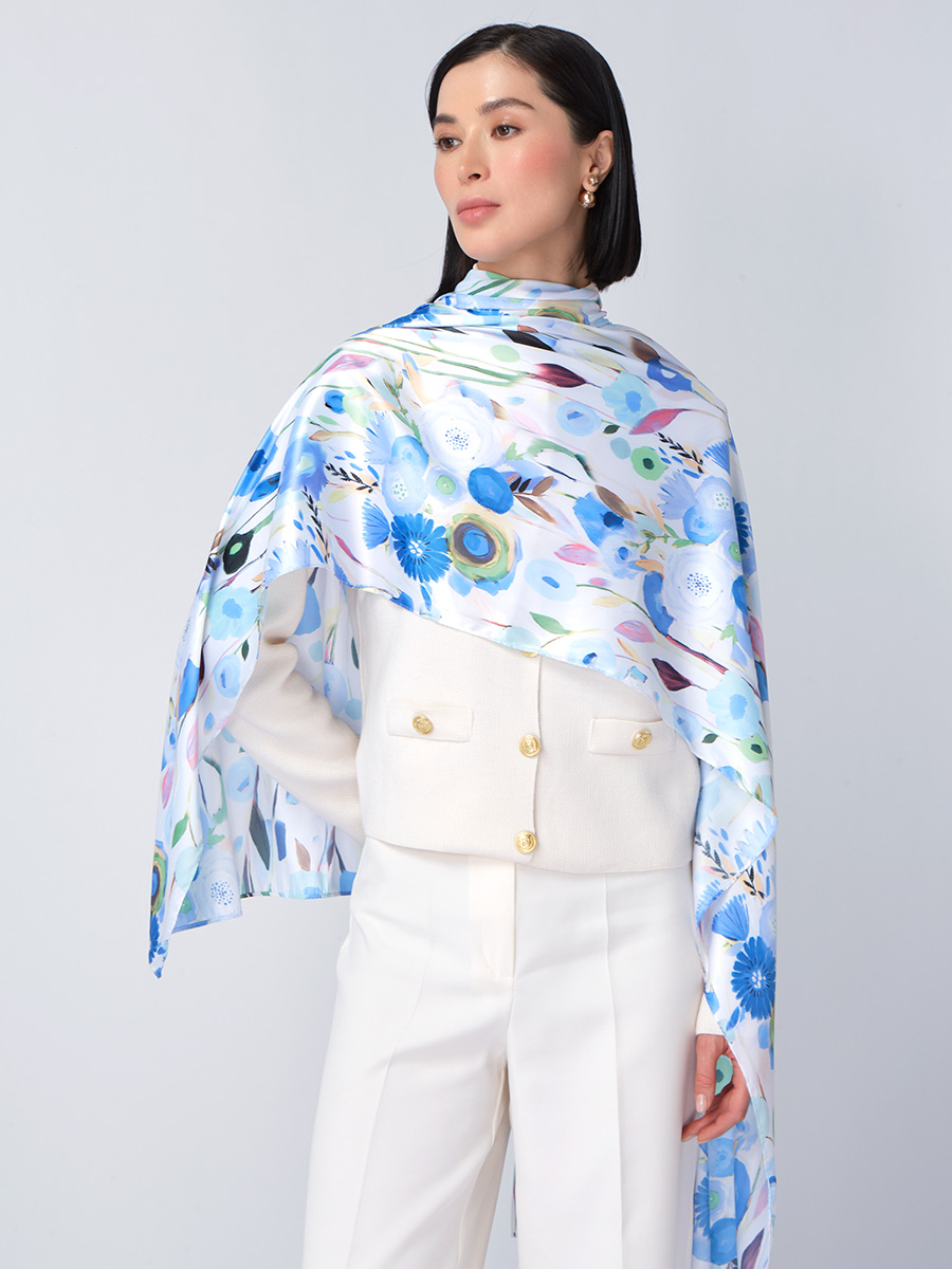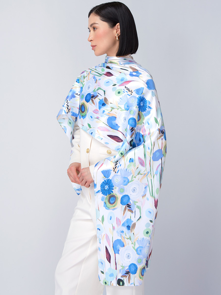 Большой, мягкий, тонкий и очень нежный палантин с рисунком. Только ручная стирка. 45% полиэстер, 35% вискоза, 20% шелк