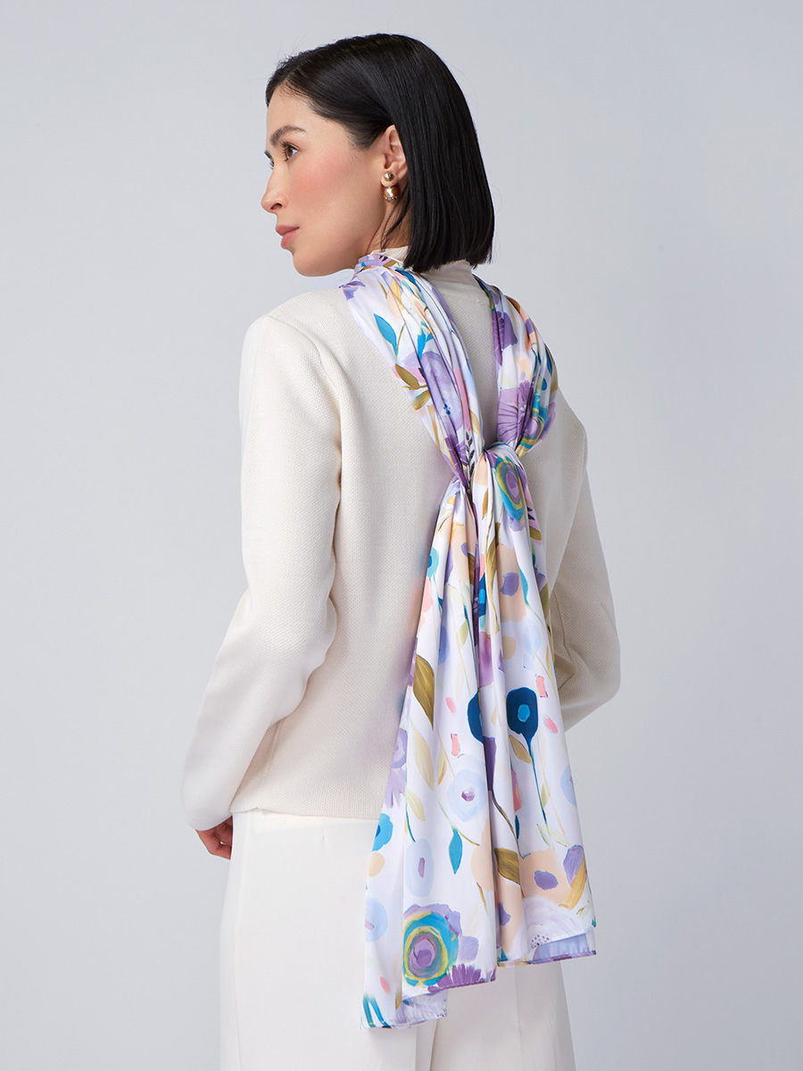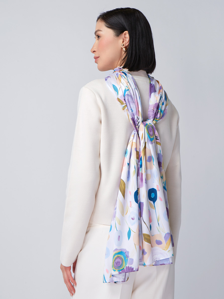 Большой, мягкий, тонкий и очень нежный палантин с рисунком. Только ручная стирка. 45% полиэстер, 35% вискоза, 20% шелк