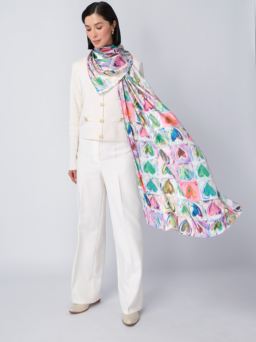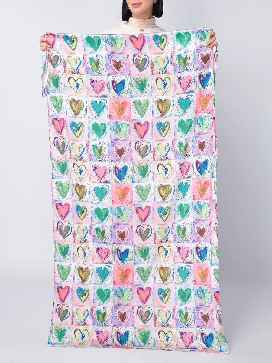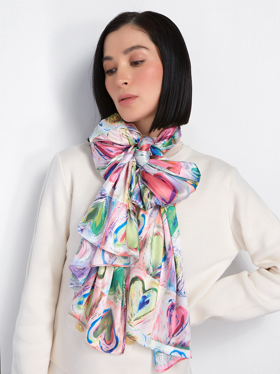 Большой, мягкий, тонкий и очень нежный палантин с рисунком. Только ручная стирка. 45% полиэстер, 35% вискоза, 20% шелк