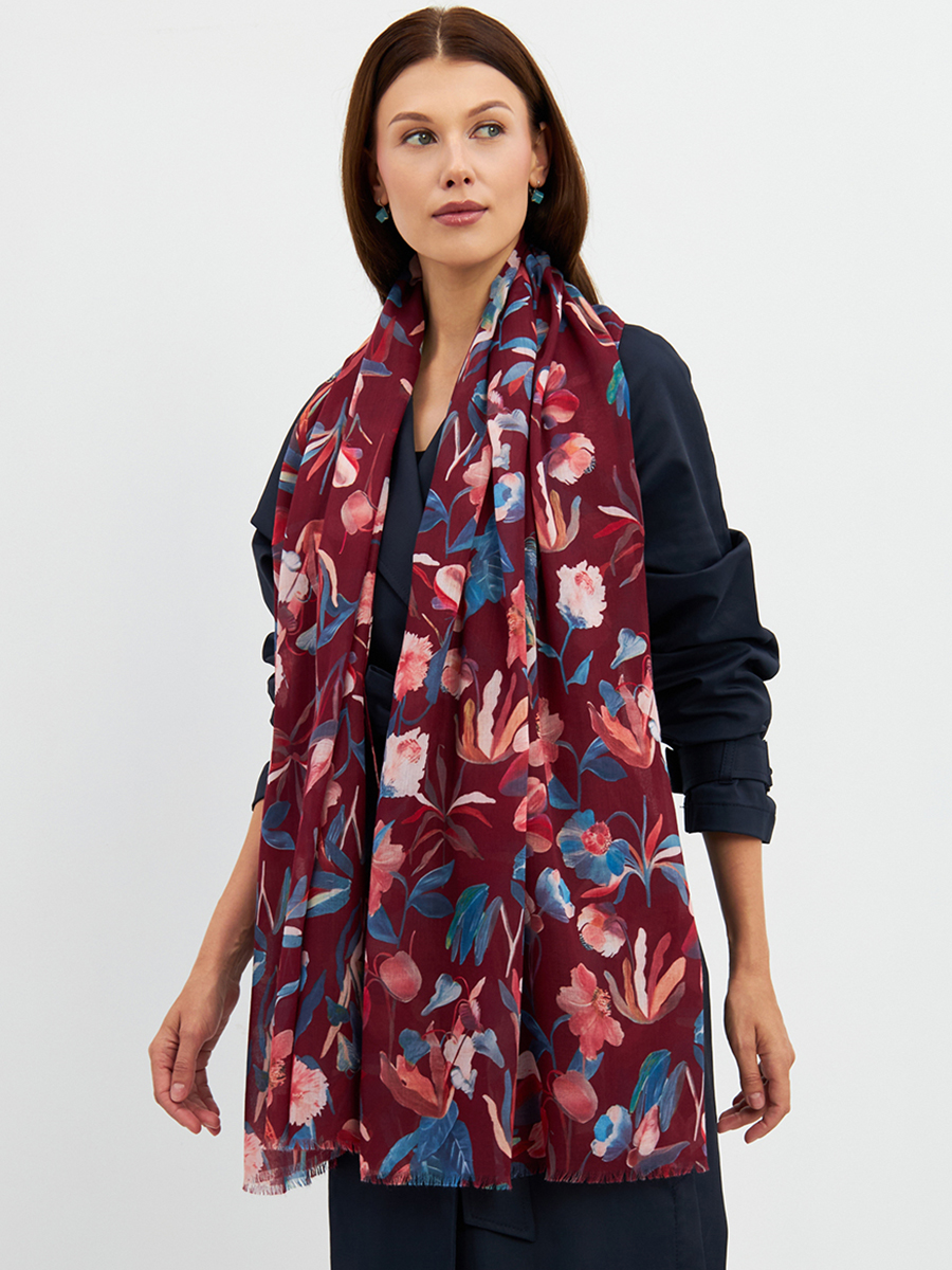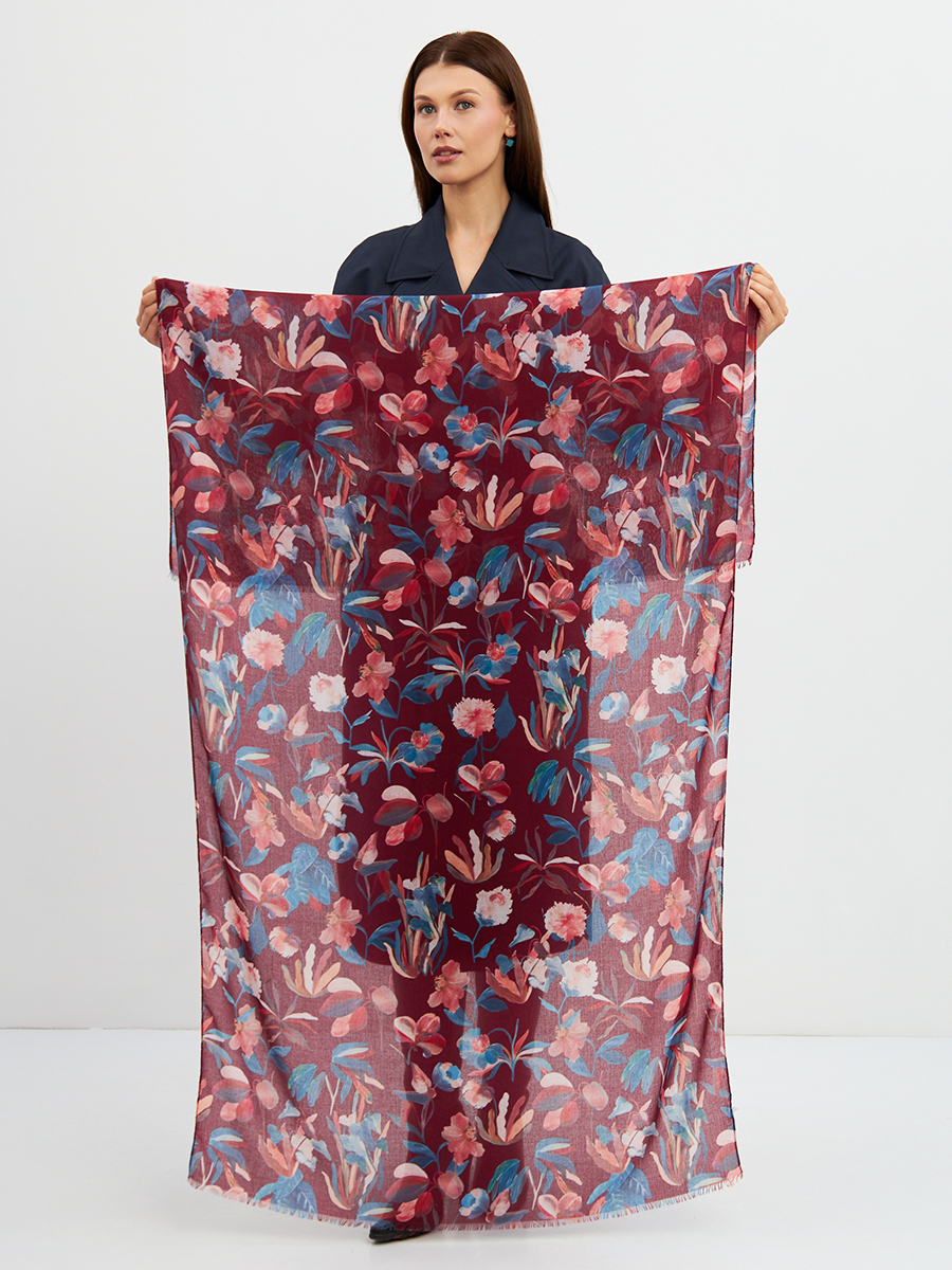Большой, мягкий, тонкий и очень нежный палантин с рисунком. Края изделия украшены бахромой ручной работы. Машинная деликатная стирка. 55% полиэстер, 35% вискоза, 10% шелк