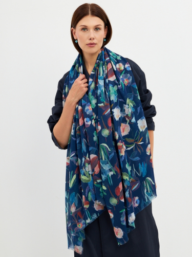 Большой, мягкий, тонкий и очень нежный палантин с рисунком. Края изделия украшены бахромой ручной работы. Машинная деликатная стирка. 55% полиэстер, 35% вискоза, 10% шелк