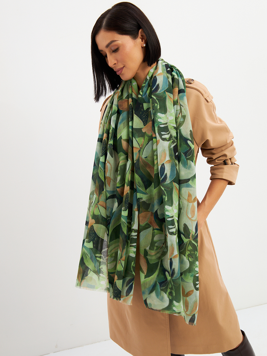 Большой, мягкий, тонкий и очень нежный палантин с рисунком. Края изделия украшены бахромой ручной работы. Машинная деликатная стирка. 55% полиэстер, 35% вискоза, 10% шелк
