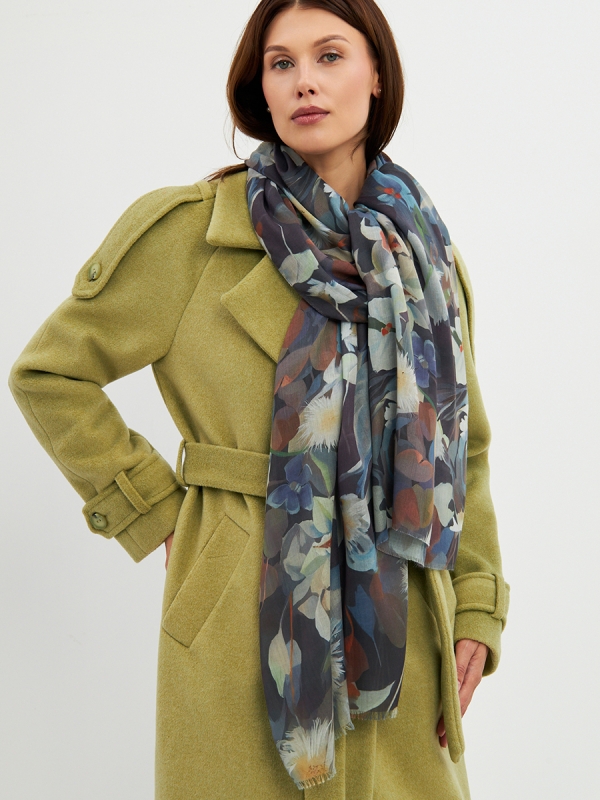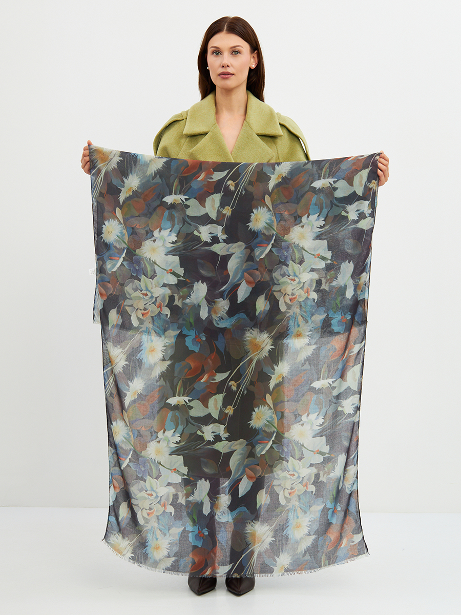 Большой, мягкий, тонкий и очень нежный палантин с рисунком. Края изделия украшены бахромой ручной работы. Машинная деликатная стирка.