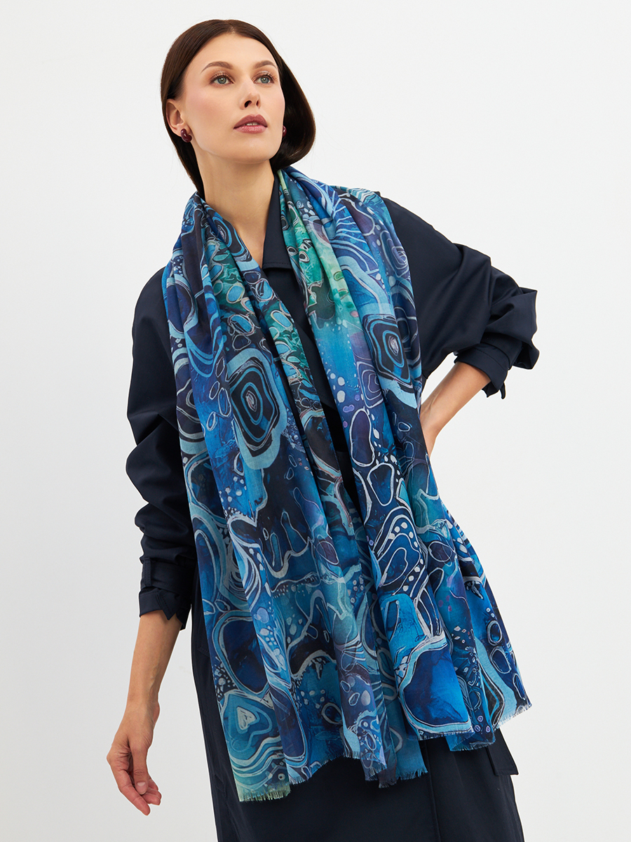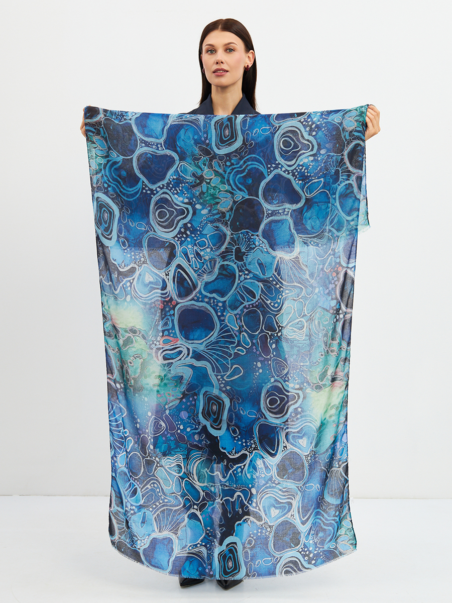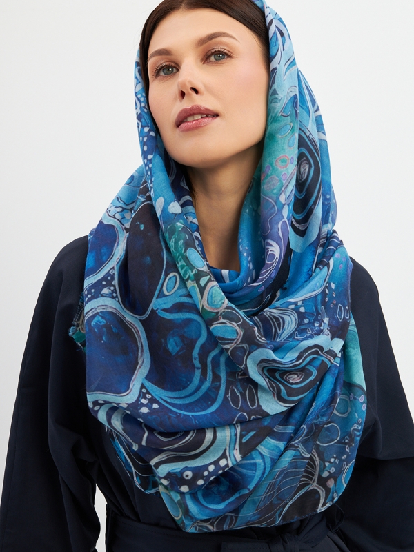 Большой, мягкий, тонкий и очень нежный палантин с рисунком. Края изделия украшены бахромой ручной работы. Машинная деликатная стирка. 55% полиэстер, 35% вискоза, 10% шелк