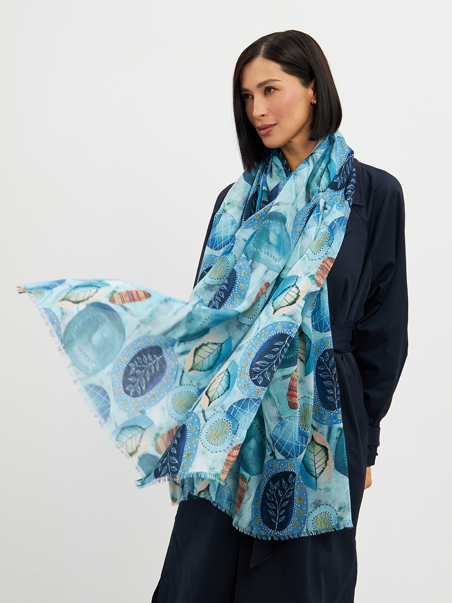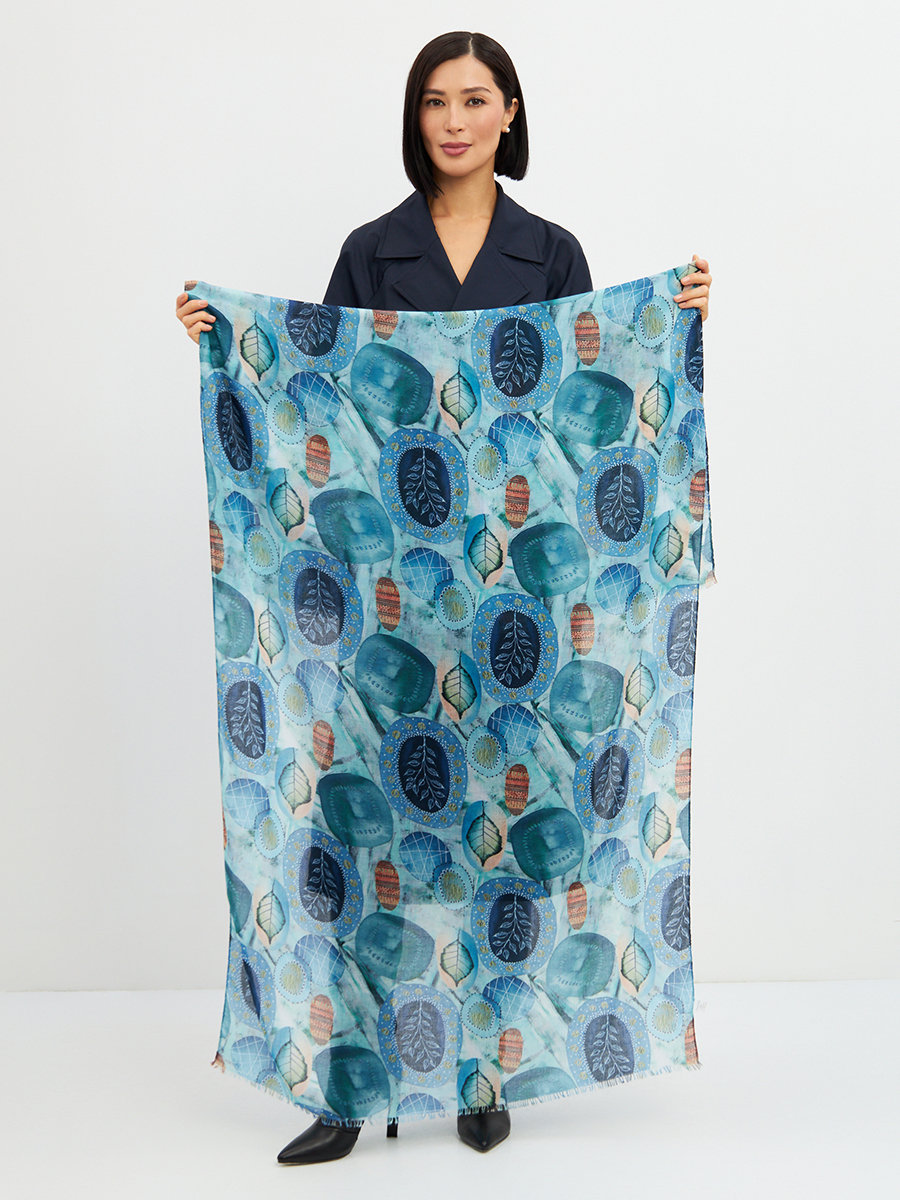 Большой, мягкий, тонкий и очень нежный палантин с рисунком. Края изделия украшены бахромой ручной работы. Машинная деликатная стирка.