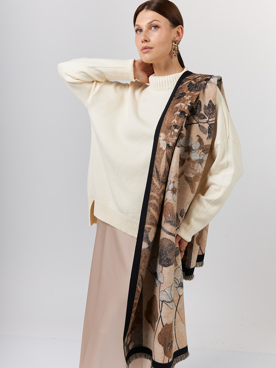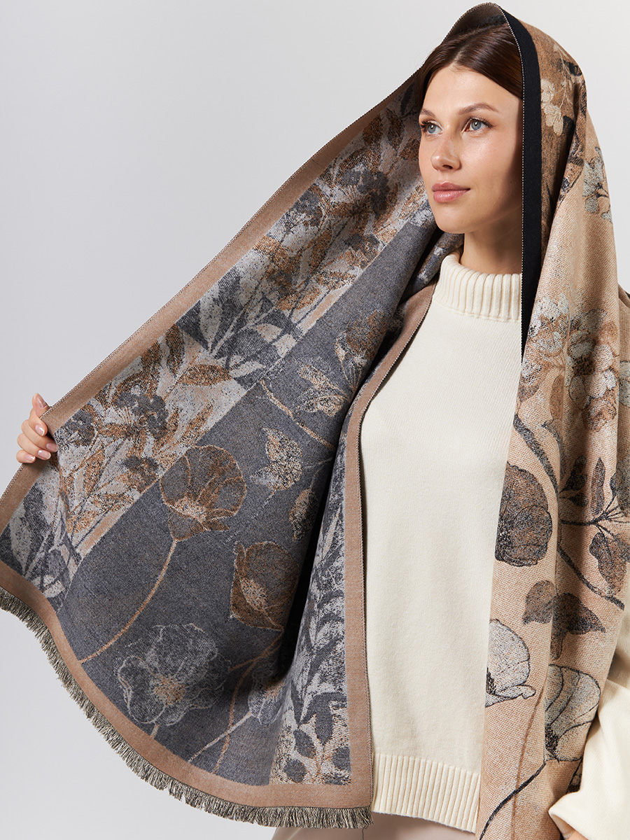 Большой, мягкий, теплый однотонный двусторонний палантин. Только ручная стирка.