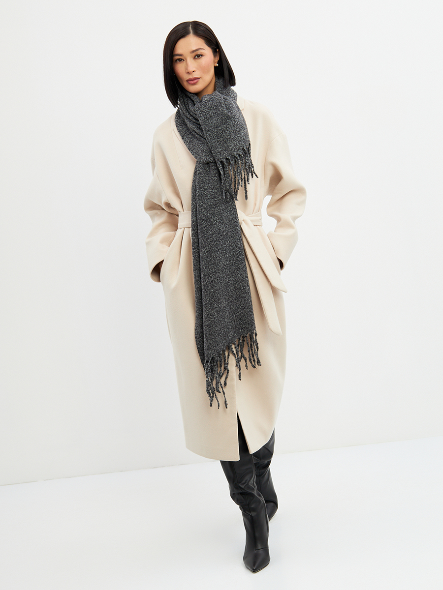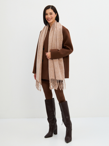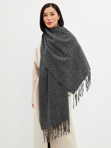 Большой, мягкий, теплый двусторонний однотонный палантин. Края изделия украшены бахромой. Машинная деликатная стирка. Шерсть 10% Модал 55% Вискоза 35%