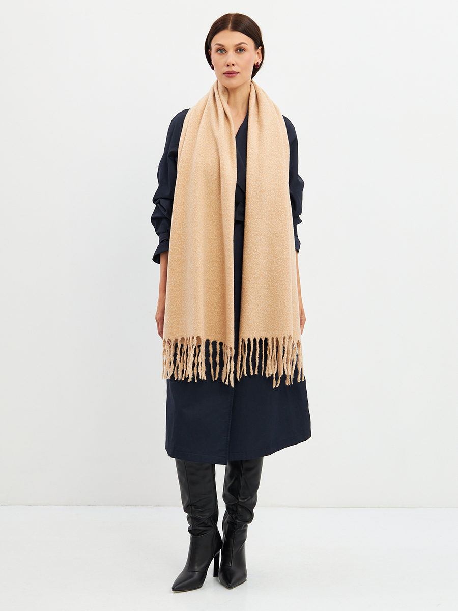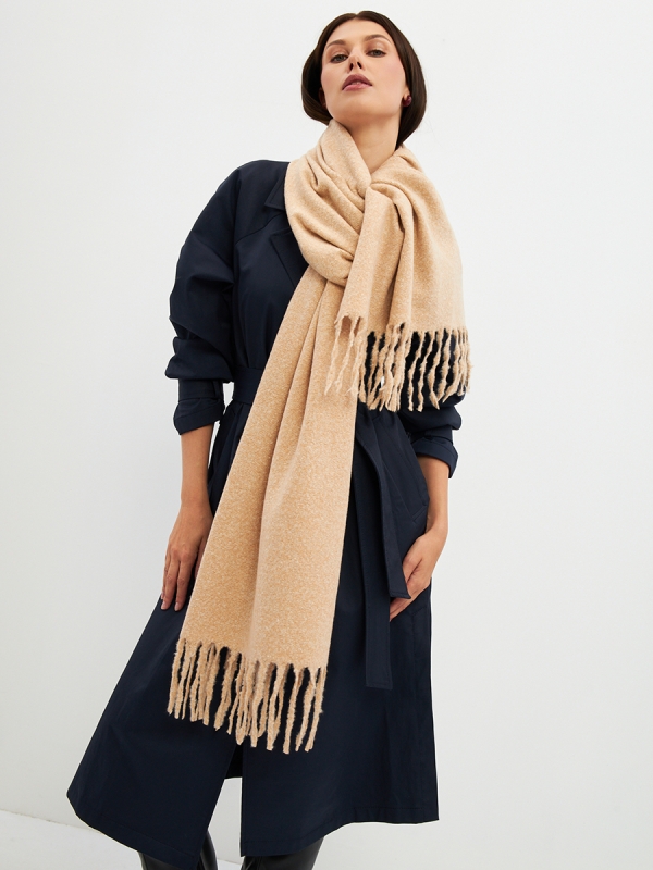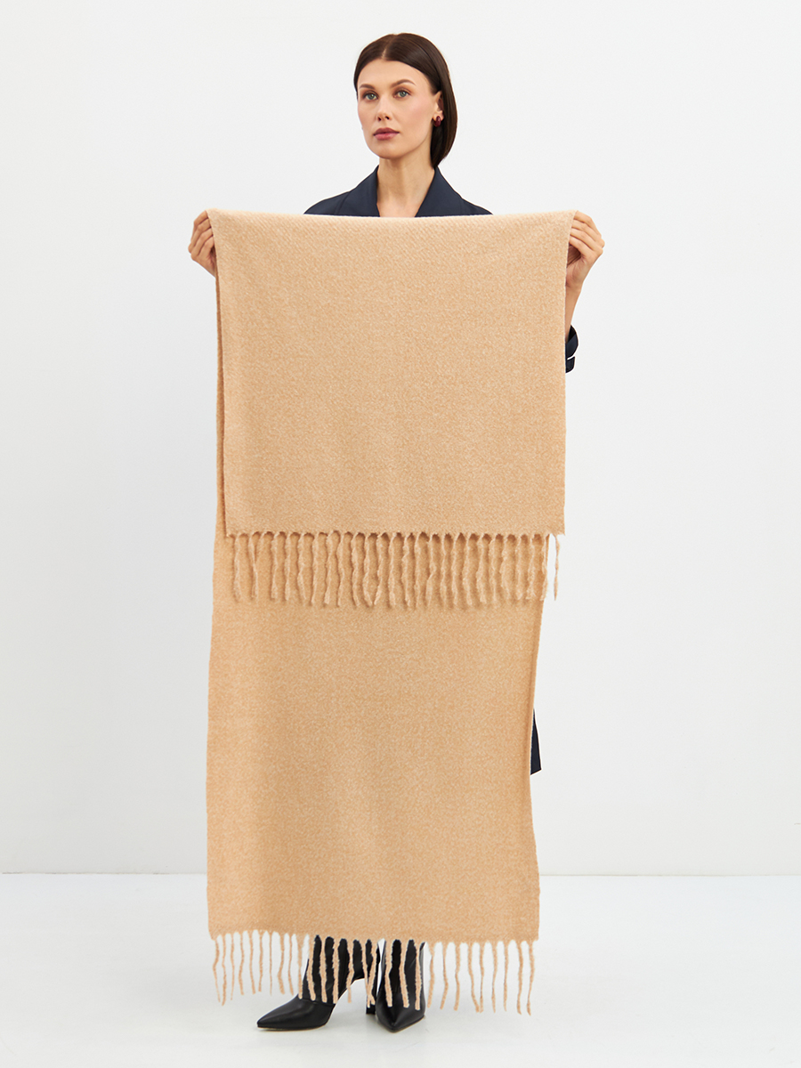 Большой, мягкий, теплый двусторонний однотонный палантин. Края изделия украшены бахромой. Машинная деликатная стирка. Шерсть 10% Модал 55% Вискоза 35%
