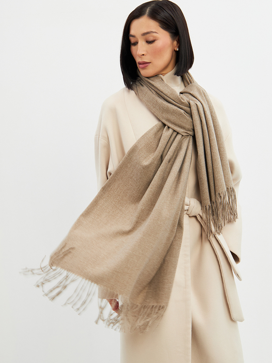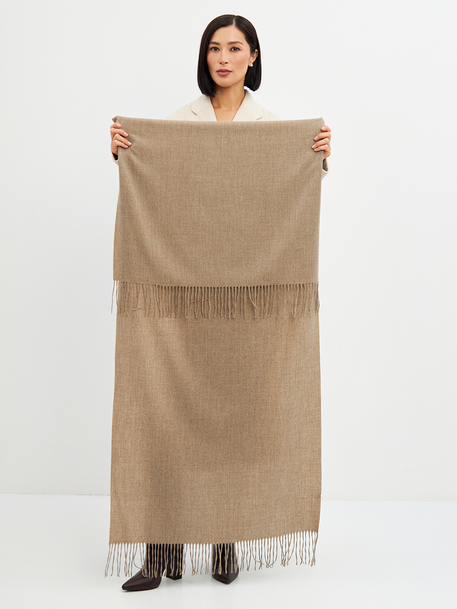 Большой, мягкий, теплый двусторонний однотонный палантин. Края изделия украшены кистями. Машинная деликатная стирка. Шерсть 20% Модал 45% Вискоза 35%