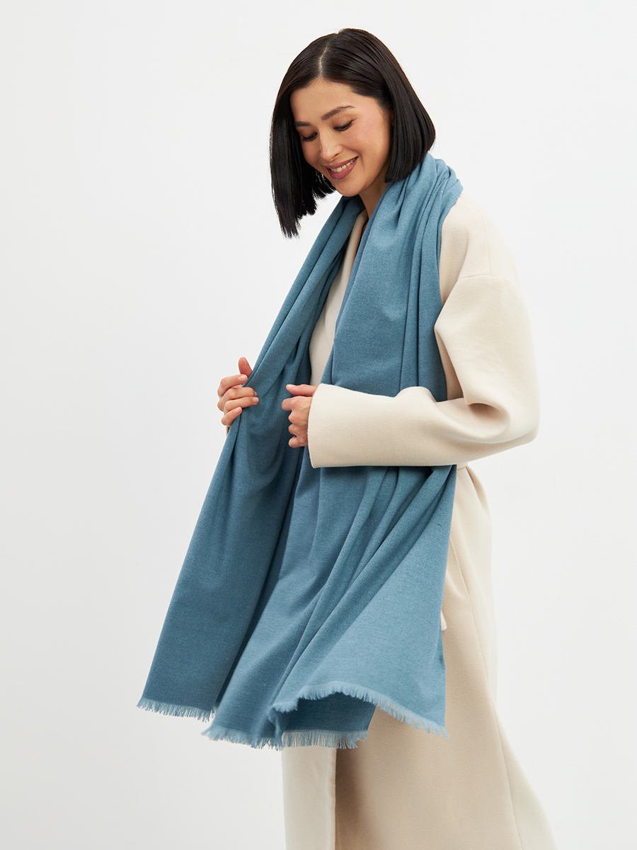 Большой, мягкий, теплый двусторонний однотонный палантин. Края изделия украшены бахромой. Машинная деликатная стирка. Вискоза/ Шерсть/ Модал