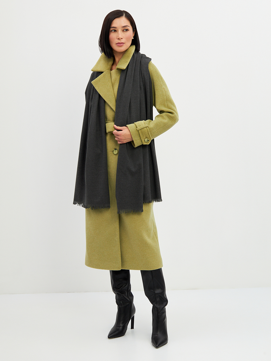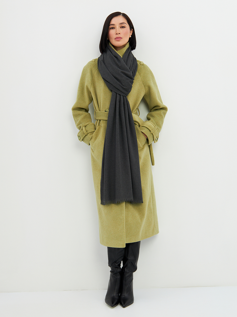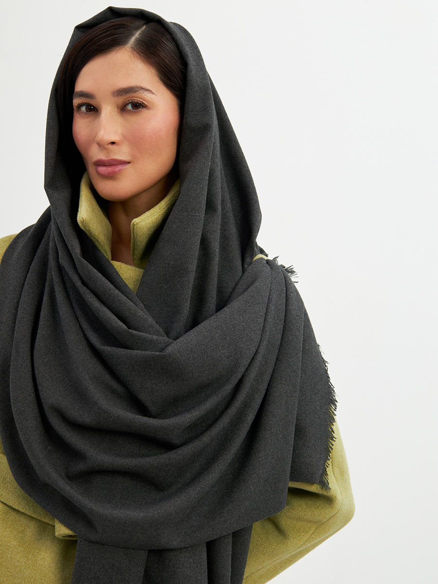Большой, мягкий, теплый двусторонний однотонный палантин. Края изделия украшены бахромой. Машинная деликатная стирка. Вискоза/ Шерсть/ Модал